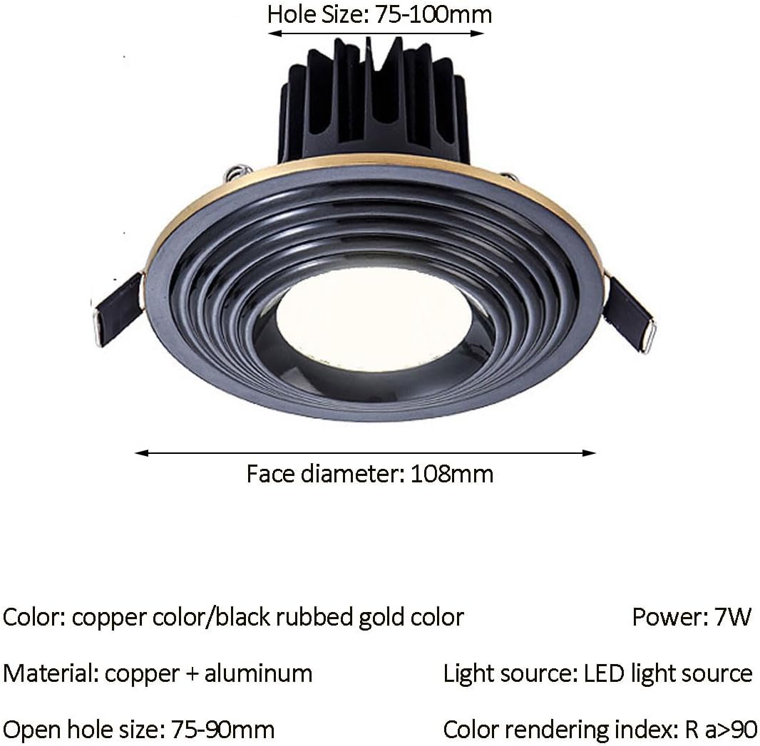 Thank you for visiting our store and happy shopping! ? Packing List: 1 x LED Downlight Parameters: - Material: Brass + Aluminum - Light Source: LED Chip - Color: brass color/black rubbed gold - Color temperature: 3 color dimming - Power: 7W - Installation: Recessed - Whether dimmable: dimmable - Switch: wall control - Voltage: 85-240(V) - Opening size: 75-100mm - Color rendering index: Ra>90 - Beam angle: Diffused Application: foyer/bathroom/hallway/garage/office/staircase/home/furniture/commercial portrait/wine cooler/display case etc.(Bulb not included)