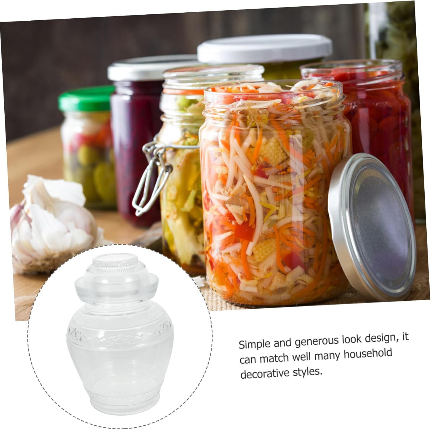 Package List 1 x glass jar Features - Material: Glass sealed jar -Note: random pattern glass fermenting jar - Capacity: 2.5kg pickled vegetable jar - Size: 22.50X15.00X15.00cm/8.84X5.89X5.89in transparent pickle jar - ColorTransparent clear storage container - Good airtightness, transparent bottle body, can easily distinguish the food pickle keeper. - Moisture- , dust- and - , kitchen storage jar with lid. - glass, fine workmanship, thick production, high strength pickle container. - Made of , and healthy, you can use it with confidence glass fermenting jug. - It has a wide range of applications. It can be used for all kinds of grains, dried fruit, tea, beans, food materials, etc., and can also be used for pickling, kimchi jars, etc glass storage container.Goods Descriptionkitchen jar You can see the stuffs inside through the transparent material, an essential for every home.storage jar glass storage tank, great for keeping food fresh, dry and completely sealed, you can use kitchen staples like flour, sugar, rice, nuts, beans, snack, food, cereal, coffee, or tea leaves