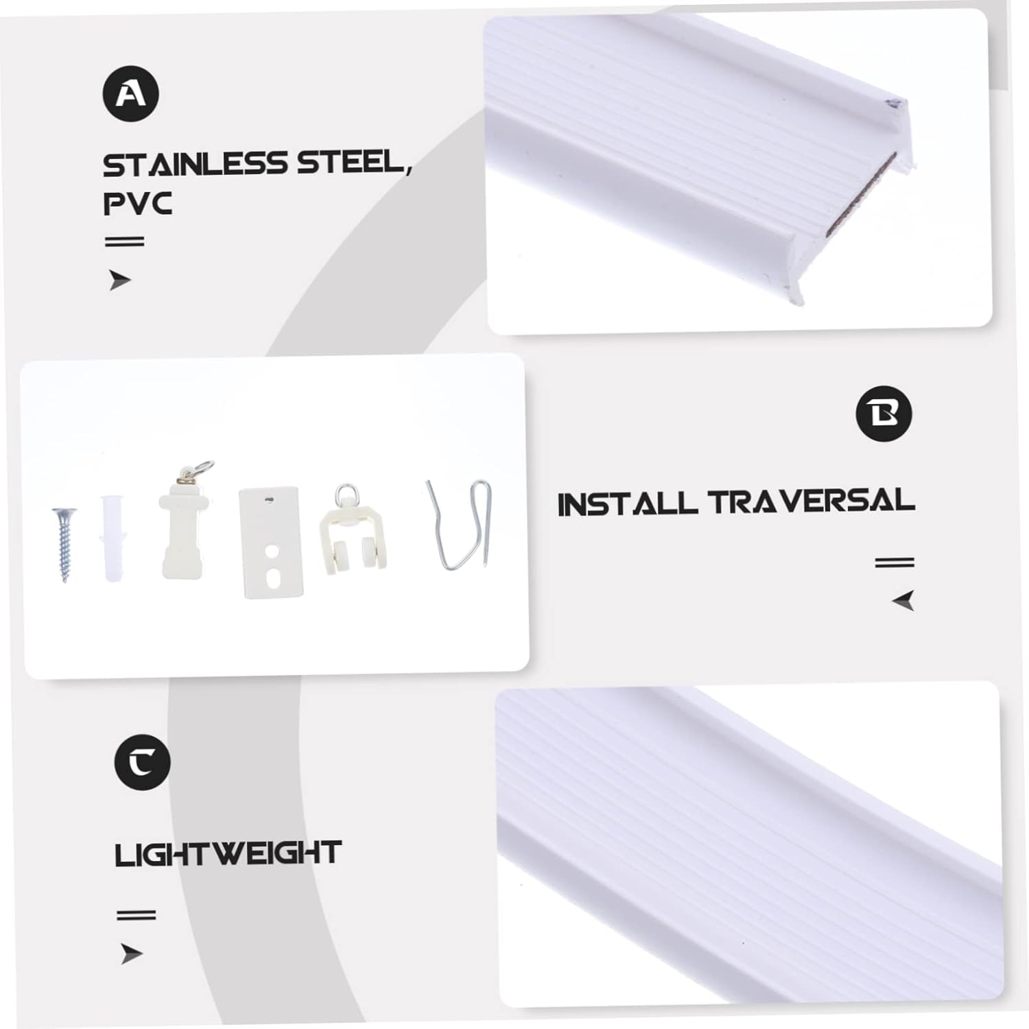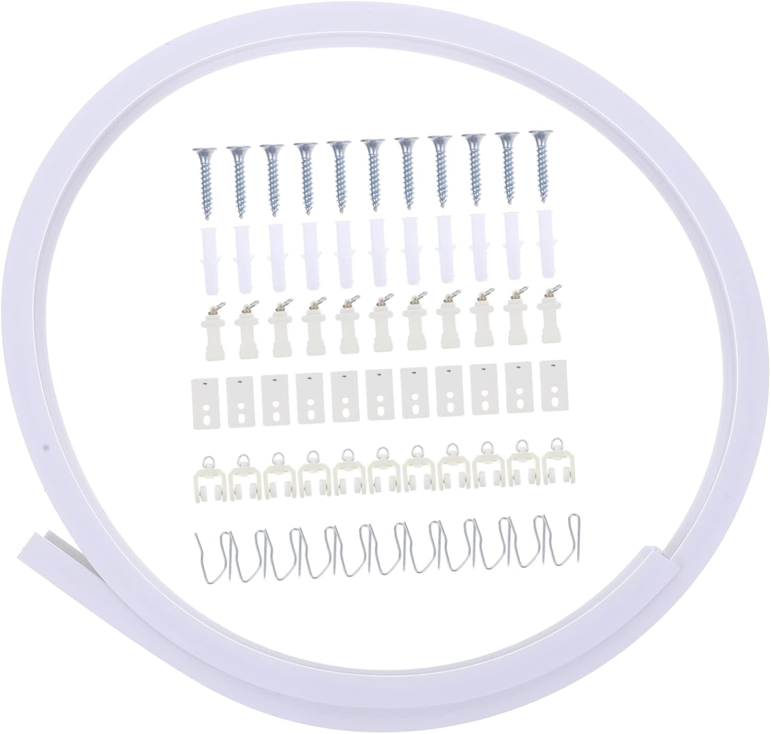 Package List 1 x Curtain Track 30 x Hooks 30 x Pulley Wheels 15 x Mounting Codes 4 x Plugs 15 x Screws 15 x Expansion Tubes Features -Color:White ceiling track room divider -Material:Stainless steel, PVC ceiling room divider -Size:500.00X2.30X1.00cm/196.50X0.90X0.39in ceiling track - The curtain track and , excellent and great, serving for long time curtain ceiling track. - Ceiling curtain track, easy and convenient to install, useful and flexible for daily use ceiling mount curtain track system. - Curved shape design, bendable and flexible, ceiling curtain track silent, smooth and curtain rail. - Ceiling curtain track can be curved to fit any sharpen or narrow angles of windows curtain rails. - Curtain rail track can be used as RV curtain track, ceiling curtain track room divider, store/shop curtain track, etc ceiling curtain track.Goods Informationcurtain divider The curtain track tool is easy to install and simple to use, bring much convenience to you.curtain rail Made from PVC and stainless steel for years of use without yellowing, cracking or breaking.ceiling mount curtain track The curtain track is excellent and smooth, silent, useful and wonderful household use