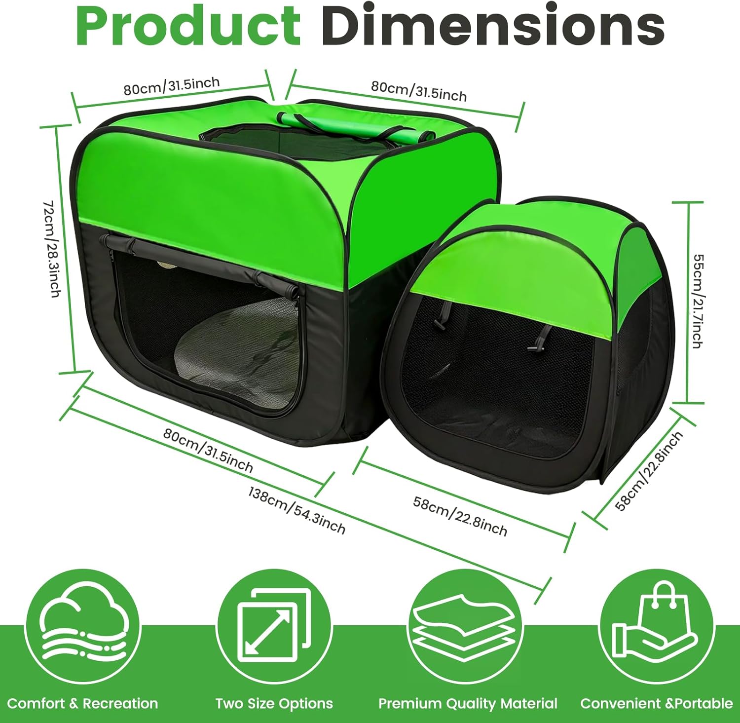 Give Your Furry Friend a Safe, Cozy Space—Anywhere, Anytime Whether you're at home, traveling, or enjoying the outdoors, this 2-in-1 portable pet playpen offers the perfect solution for pet parents who want to keep their cats, kittens, or small dogs safe and comfortable. Designed with both convenience and functionality in mind, this pop-up enclosure combines a spacious interior, a removable German fleece pee pad, and a litter box compatible area—all in one easy-to-use setup. Spacious & Thoughtful Design Measuring 54.3"L x 31.5"W x 28.3"H, this pet playpen provides ample room for your pet to play, nap, and move freely. The generous size comfortably accommodates multiple kittens, small dogs, or a mother cat with her litter. Whether used indoors as a cozy retreat or outdoors as a secure play yard, your pet will enjoy plenty of space to roam without feeling confined. 2-in-1 Removable & Washable German Fleece Pee Pad Say goodbye to messy cleanups. This playpen comes with a soft, highly absorbent German fleece pee pad that is fully removable and machine washable. The 2-in-1 design keeps the floor of the enclosure dry and clean while offering your pet a comfortable surface to rest on. No more disposable pads—just easy, eco-friendly maintenance. Litter Box Compatible Area Designed with a dedicated section that fits a standard litter box, this enclosure helps you maintain a clean and organized living space for your pet. The separation is ideal for potty training, keeping food, bedding, and litter areas distinct. Your cat will appreciate the privacy, and you’ll appreciate the easy upkeep. Pop-Up, Portable & Travel Ready No tools, no assembly—simply unfold and it’s ready to use in seconds. Lightweight yet sturdy, this playpen folds flat into a compact size that fits easily into the included carry bag. Perfect for camping trips, road travel, backyard lounging, or as a spare indoor enclosure. Take your pet’s safe space wherever you go. Built to Last with Safety in Mind Crafted from durable 600D Oxford fabric, reinforced anti-tear mesh, and a sturdy steel frame, this enclosure is built to withstand daily use. The secure zipper closure and anti-escape design give you peace of mind, whether you're supervising or stepping away briefly. Designed for small animals including cats, kittens, puppies, rabbits, ferrets, and more. Versatile Use for Any Occasion Use it as a daily playpen, a travel crate, a birthing space for mother cats, or a temporary shelter during outdoor activities. This multifunctional pet enclosure adapts to your needs—indoors or outdoors—making it a must-have for any pet household. Product Specifications: Overall Dimensions: 54.3"L x 31.5"W x 28.3"H Material: 600D Oxford fabric, anti-tear mesh, steel frame Includes: Removable & washable German fleece pee pad, carry bag Suitable for: Cats, kittens, small dogs, rabbits, and other small animals Setup: Pop-up, tool-free assembly