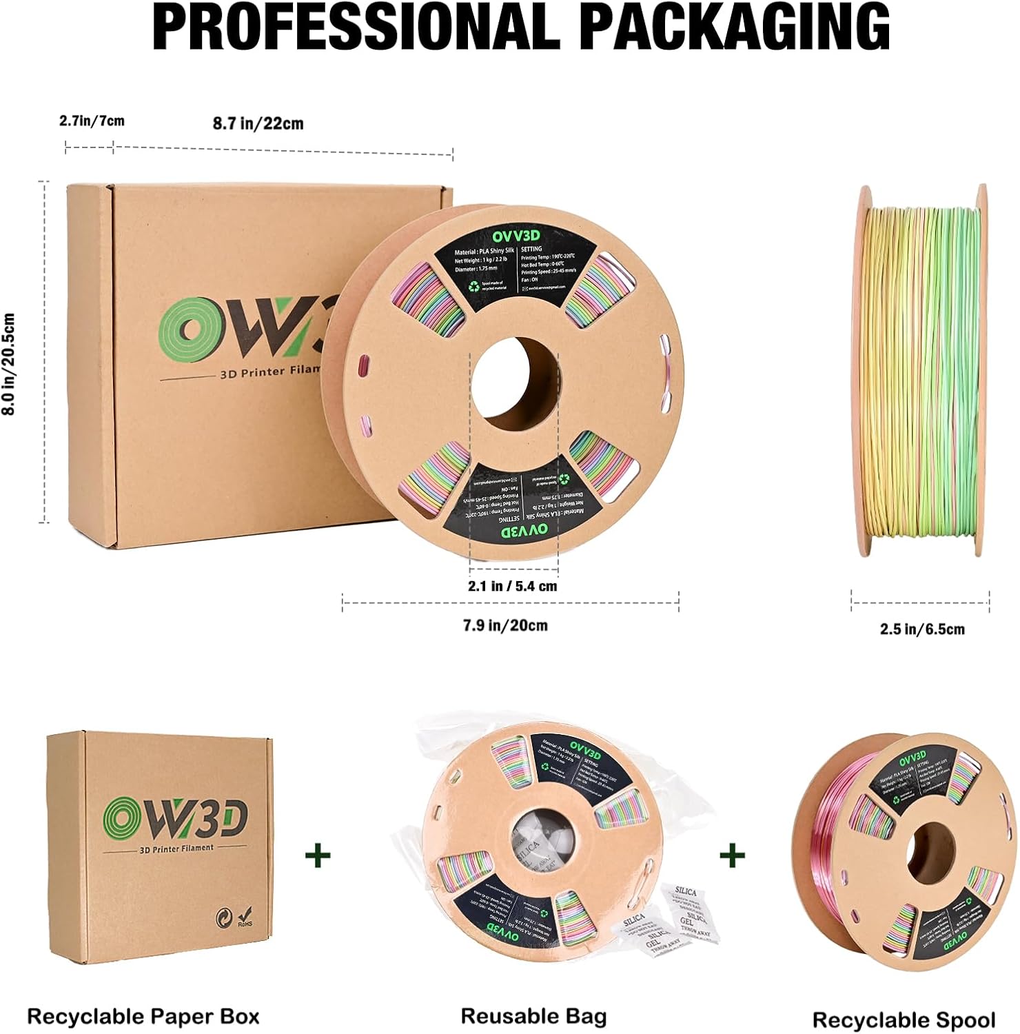 (2 Items)OVV3D Tri-Colors & Silk Rainbow PLA 3D Printer Filament 1.75mm, Multicolor Silk Rainbow PLA Filament&Silk PLA Red-Yellow-Blue PLA Filament 1kg+1kg
