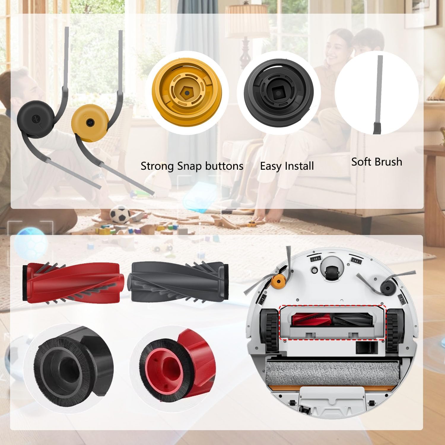Replacement Parts Accessories kit For Roborock Qrevo Curv 2 Flow Robot Vacuum and Mop,4 Main Brush 2 Roller Mop Cloth 4 Hepa Filter 6 Side Brush 4 Dust Bag 2 Cleaning Tool