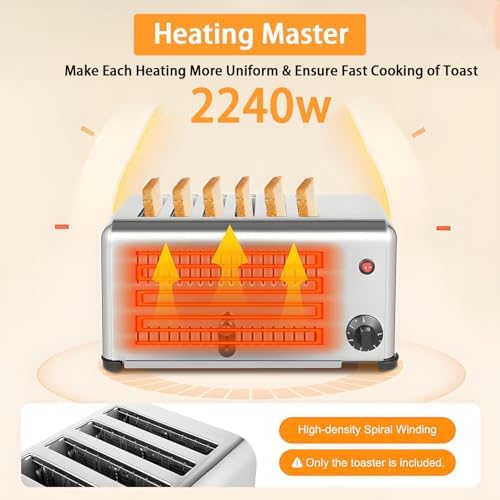 Introducing our versatile Stainless Steel Pop-up Toaster, designed to elevate your breakfast experience. With a sleek silver finish and a choice of 4 or 6-slice capacity, this toaster is perfect for households, restaurants, or breakfast cafes, making it an essential addition to your kitchen. This toaster features a wide slot (1.1 inches) that accommodates various bread thicknesses, ensuring your favorite bagels, artisan breads, or thick slices toast to perfection. The thoughtful timer function allows you to customize your toasting experience, while the adjustable temperature range of 50-260℃ provides flexibility for your culinary needs. Cleanup is a breeze thanks to the innovative drawer-type crumb tray, which collects crumbs efficiently and is easy to disassemble for thorough cleaning. Safety is prioritized with the voltage rod feature that automatically pops up your toast while cutting off power, preventing any accidents. Designed for durability and safety, the toaster includes heat dissipation holes to prevent overheating during use, as well as anti-skid feet for stability, ensuring it stays securely in place on your countertop. Whether you're preparing a quick breakfast for your family or serving up delicious toast for customers, this toaster combines convenience, efficiency, and style. Enjoy delightful mornings with perfectly toasted bread every time. Specifications: - Voltage: 110V/220V - Power: 2240W - Timing range: 1-5 minutes - Slot width: 1.1 inches - Product dimensions: 330*220*220mm or 420*220*220mm Package includes: - 1 Toaster - 1 Manual Please note: This product can become very hot during use; avoid contact with hot surfaces to prevent burns. Minor size variations may occur due to manual measurements.