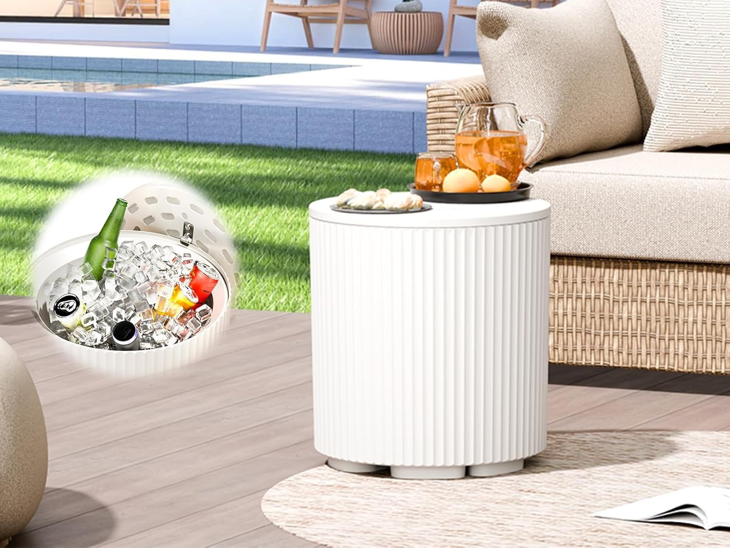 FONTOI 2PCS Outdoor Cooler Side Table, Patio Portable Ice Bucket Cooler - 2 in 1, Table and Ice Chest Storage,16.65 in Outdoor Ice Chest Side for Parties Picnics Beach, Garden Stool, Poolside,White