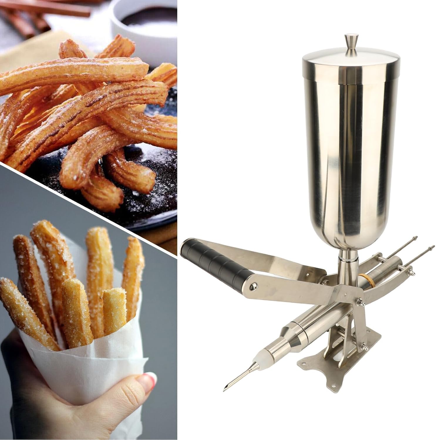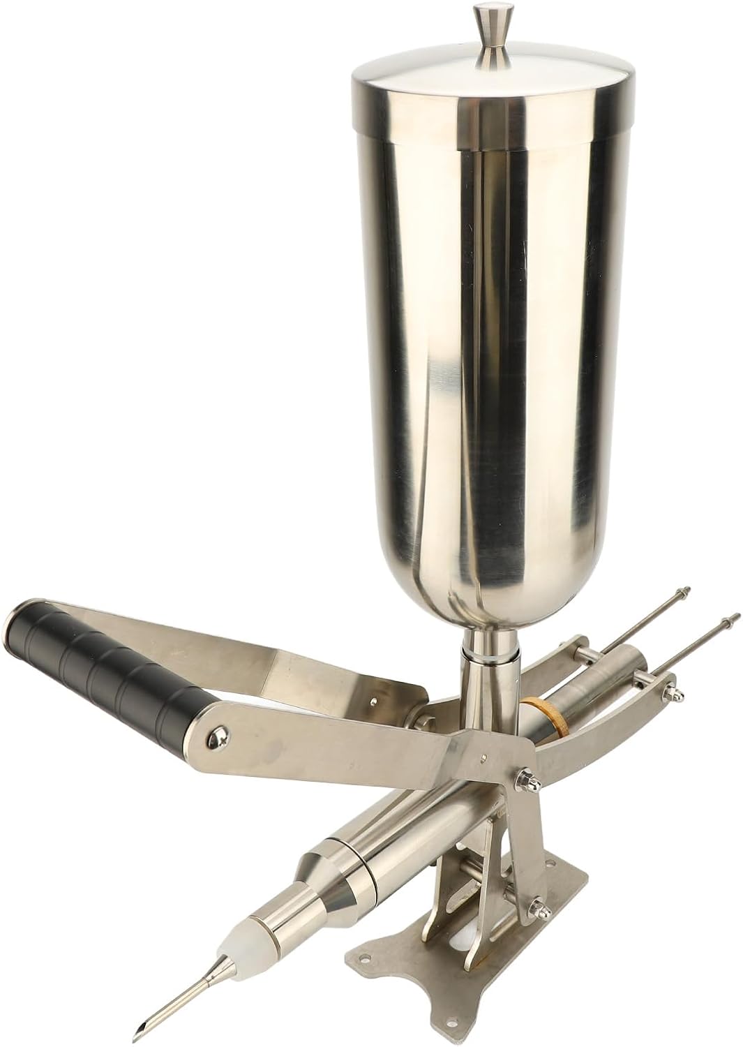 1. HIGH DURABILITY: The donut filler machine is made of premium 304 stainless steel material, proof, integrated molding, and sturdy, can be used for a long time.2. LARGE CAPACITY: The extra large capacity chute can be filled with about 4.5L of cream, which allows you to fill a lot of donuts at once without having to refill them frequently.3. USER FRIENDLY: This donut filler machine is easy to operate. You just need to insert the filling tube into the donut and then gently pull the handle to fill the donut with cream.4. SPACE SAVING: The donut jelly filler injector machine has a simple structured Y shaped base that allows you to store it in a cabinet or box without taking up too much space.5. EASY TO CLEAN: This jelly cream filling machine has a flat that allows you to easily wipe away with water, a dry cloth or wet wipes, making cleaning and maintenance simple and easy.Specification:Item Type: Donut Filler MachineMaterial: 304 Stainless Steel Size: Approx. 57.5 x 56.5 x 20cm / 22.6 x 22.2 x 7.9in Capacity: Approx. 4.5L Filling Diameter: Approx. 6mm / 0.24inPurpose: Food Filling, Jam, etc. Features: Integrated Molding, RustproofGross Weight: Approx. 7700g / 17lbHow to Use:Follow the instruction manual to use.packing list:1 x Donut Filler Machine Host1 x Jar1 x Cover3 x Filling Tube2 x Long Screw3 x Short Screw3 x Rubber 1 x Spring1 x Wrench1 x Accessory1 x Instruction ManualNote:Manual measurement, please allow some errors.