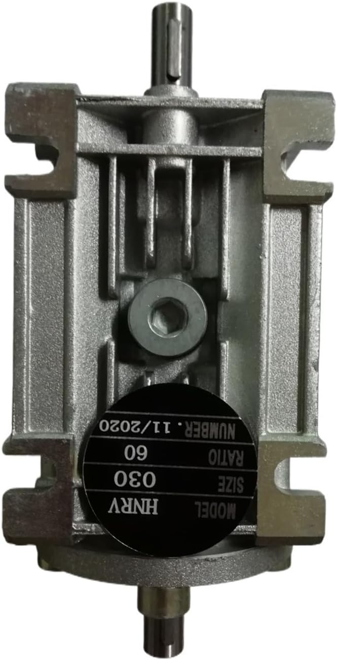 Reducers5: 1-80:1 worm gear reducer NRV030-VS double input shaft 9mm 90 degree Worm Gearbox Speed Reducer1pc NMRV30 reducerMaterial for worm reducergearbox:Worm wheel:Nodular cast iron and bronzeWorm shaft: 20Cr steel.The hardness of surface is 56-62HRC with carbonized layer 0.3-0.5mmHousing:aluminum with oven paintingColor: silver and blue (sometimes just one color)Feature ofworm reducer gearbox:1) aluminum alloy die cast gearbox2) High accuracy worm gear and worm shaft3) Less noise and lower temperature increase4) Easy mounting and linking, high efficiencyDimensional drawing of worm reducer NRV030-VS:(unit:mm)We also have worm reducerparts such asoutput shft, arm and output flange, if any need, Please click the link below to order.14mm Single Output Shaft or Double Shaft Worm Output NMRV030 ,If you need to click==========High-concerned chemical : NoneOutput Speed : Varies with changes in speed ratioInput Speed : 1500rpmRated Power : 0.06KW-0.18 KWOutput : 2.6N.M-24 N.mModel Number : NRV030-VSGearing Arrangement : WormOrigin : Mainland Certification : output hole diameter : 14mmGearing Arrangement : WormSpeed ratio : 5:1,7.5:1,10:1,15:1,20:1,25:1,30:1,40:1,50:1,60:1,80:1