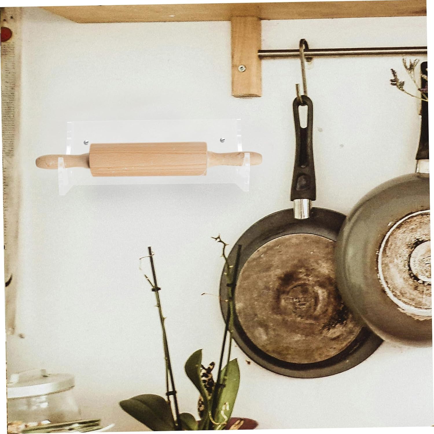 • Acrylic wall mount hanger--this wall-mounted rolling pin holder can help you to store your rolling pin on the wall stably,hanging rolling pin rack