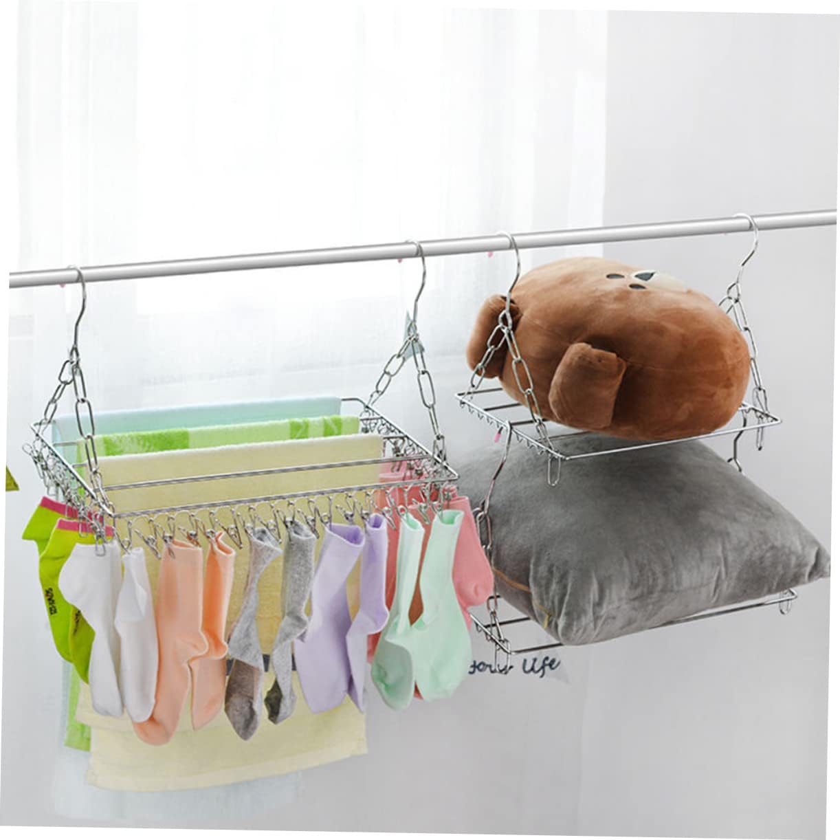 Package Include 1 x Drying Rack Features - Material: Stainless steel clothing racks for drying clothes. - Color: Silver clothes drying rack heavy duty. - Made from material, so it can use longer time multi-functional drying rod. - Hang underwear, tights, leggings, hosiery, towels and more clothes drying racks. - Also can be a good housewarming present for your friends, they will like it laundry drying rack. - It is widely used in household laundry room, bedroom, bathroom etc pant hanger. - Compact design and ready to use any time, very convenient pants hangers.Goods Informationclothing racks for drying clothes If you are looking sock drying rack with reliable quality and reasonable , I will tell you that our hanger will be your .multi-functional drying rod Suitable for inside or outside use.clothes drying racks We adopt stainless steel material, can keep it long time