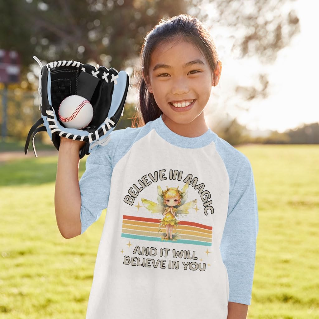 Believe in Magic Kids' Baseball T-Shirt has quality fabric and vibrant colors. It is ideal for sports, school, daily wear, or as a gift for your little one. Your kid will not only be comfortable moving but also pleased to know that they looks stylish. It is a durable and long-lasting graphic t-shirt with a comfortable fit and an easy-to-dress design, Fairy Design 3/4 Sleeve T-Shirt is the essential top in your active kid's favorite outfits.