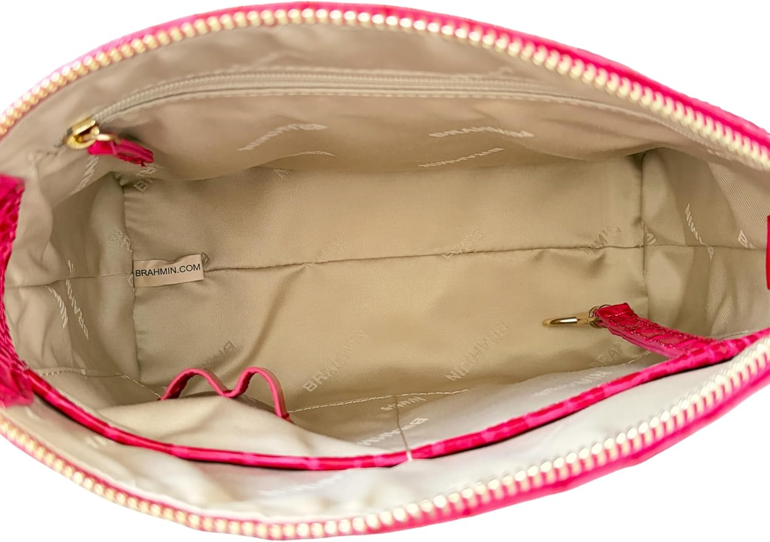 Genuine leather - Gold-tone hardware - Zip top closure - Interior: zip pocket, slip pocket, pen pocket, key clip - Exterior: back slide-in pocket - 25" strap drop for shoulder or crossbody wear - 9.5" W x 7.5" H x 4" D