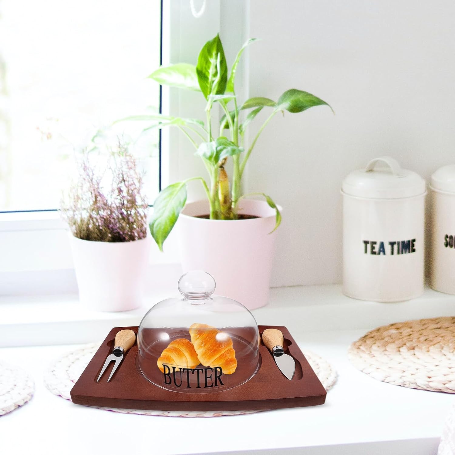 Package List 1 x wood tray*with dome) 1 x cutter 1 x fork Characteristics -Product Info:Butter box storage tank -Size:28.50X19.50X1.30cm/11.20X7.66X0.51in -Material:Wood, glass -Color:Multi - Simple cutting design, very practical in use, which brings great convenience to you wood butter holder. - Mainly made of the stable wood, glass materials, Butter Dish is and practical enough to use. - The simple appearance makes it an excellent addition to your kitchen, refined and functional butter holder tray. - The butter holder is suitable for restaurants, dessert shops, kitchens, for your own use, or as a to a friend butter holder with lid. - Easy to clean and can be washed in the dishwasher. Butter Dish is perfect for serving at the table butter containers.Goods Informationbutter containers It features a unique design that keeps food fresh and can be used to cut other foods as well.butter dishes with lids Perfect for home and travel use, it makes cutting butter and cheese a breeze.butter container with cover This small-sized butter and cheese box is made of and easy-to-clean material