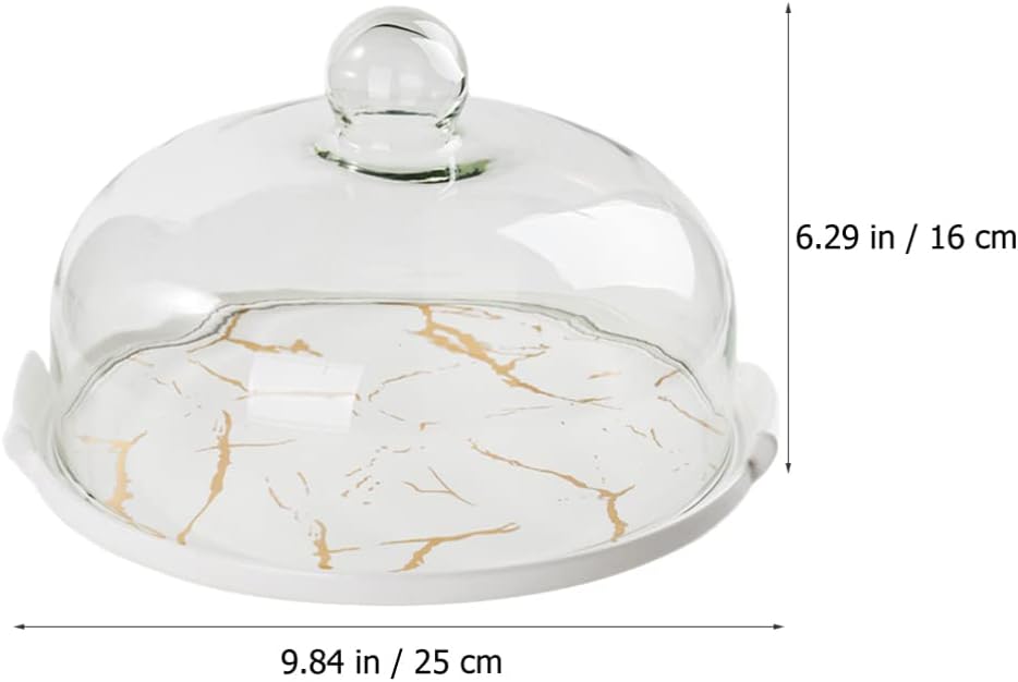 DescriptionDon't miss this terrific dessert plate. This cake display stand has a transparent dome which can display the cake and snack on the plate and it from being polluted as well. Very elegant and suitable for your party and home decor.Features-Color:White,-Material:Ceramic and glass ,-Size:25.00X25.00X 16.00cm/9.82X 9.82X6.29in,-This Cake plate with cover, Suitable for outdoor picnics, party, kitchens, restaurants, banquets, parties, -With the creative design of the storage plate, allowing you to enjoy the food.-Cake display plate is a very simple and exquisite dessert plate, which can be in your wedding or other themed parties.-The cake cover is safe and , it can keep your food on the plate always clean.-You can fill this plate with snacks to give to your family and friends, dessert display cover or you can entertain them on the dining table.Package Including1 x plate ,1 x cover,