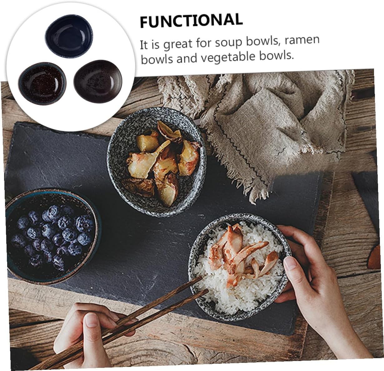 Package List 3 x Ceramics Bowls Features -Color:Random color -Product Info:Large soup bowl -Material:Ceramics -Size:13.00X11.30X5.50cm/5.11X4.44X2.16in, 300ml - and never afraid of damage. Wash hands with warm soapy water and air dry Noodle Container. -Made of food grade materials, easy to clean. -It fits your perfect size so that it always fits all the snacks and foods you like. -Ideal for cold or hot meals. size for soups, salads, noodles, grains, pasta, fruits, etc. -Set up a table, buffet or restaurant and enjoy all your favorite foods for people to enjoy soup bowl.Goods InformationFood Serving Bowl Made of material, which is and practical.ceramic Ramen bowl This is a creative food bowls, which are great as soup bowl, ramen bowl and as vegetable bowl.Creative Ramen Bowls It will showcase your favorite food well.Noodle Bowl gift for friend and family, they will love it