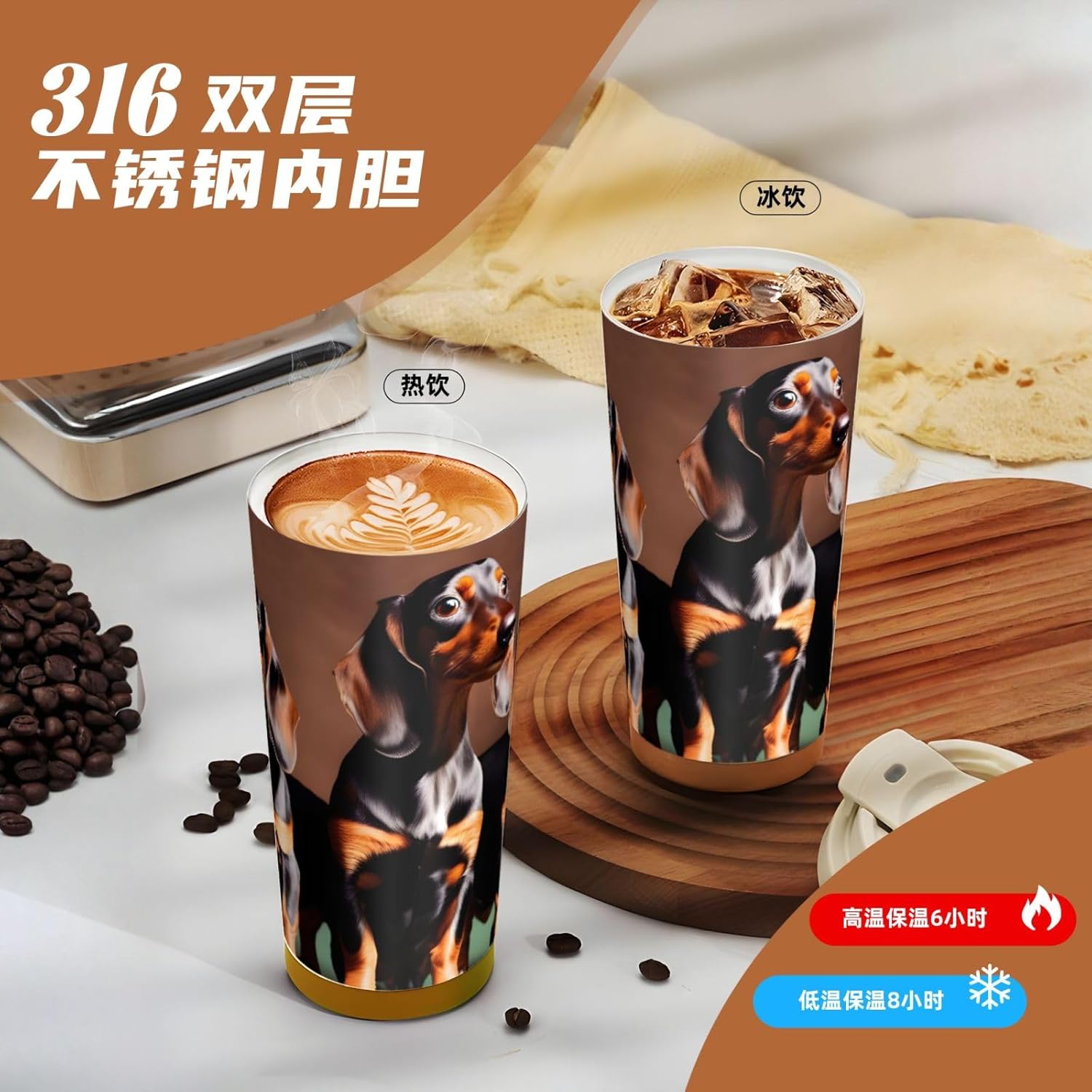 • Materials - This Dachshund Weiner Dog Print Coffee Mug Constructed With A 316 Stainless Steel Inner Layer, Offering Enhanced Resistances To Corrosion And Maintaining Beverage Purity Without Metallic Odor. Outer Shell Made Of 201 Stainless Steel, Contributing To Structural Durability While Supporting Thermal Retention Performance