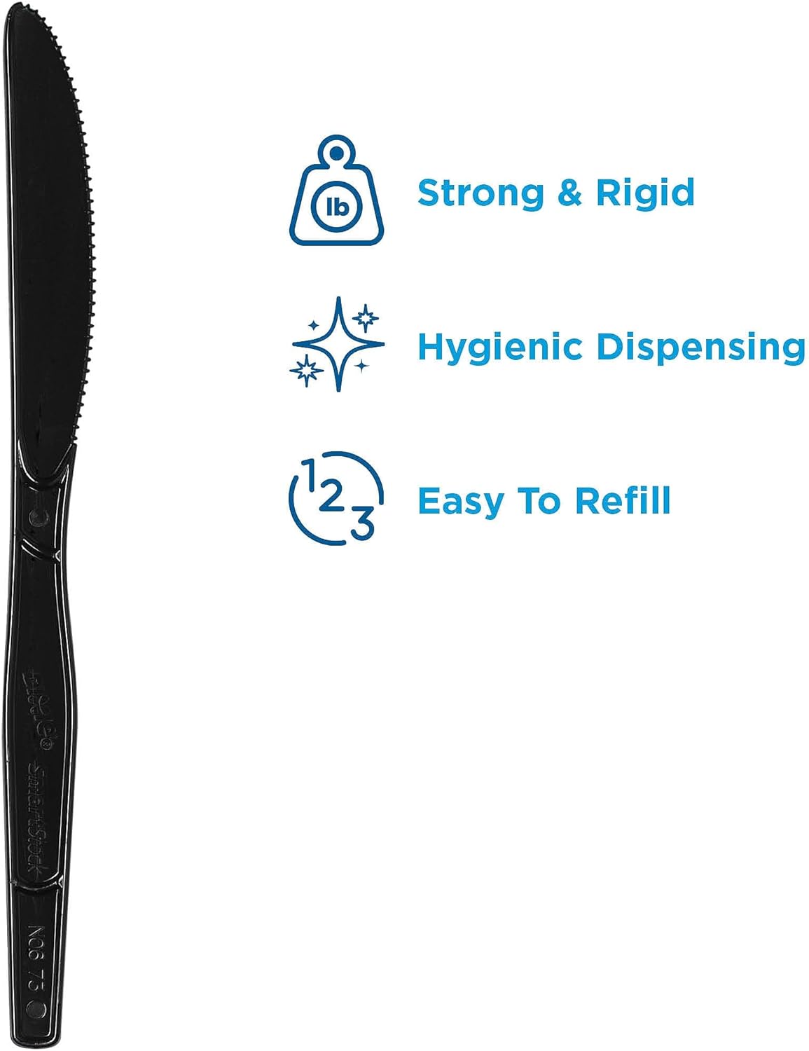 Pre-counted refill packs make restocking efficient and easy. For use with SmartStock Cutlery Dispensers (sold separately). Sturdy mediumweight cutlery provides reliable service.