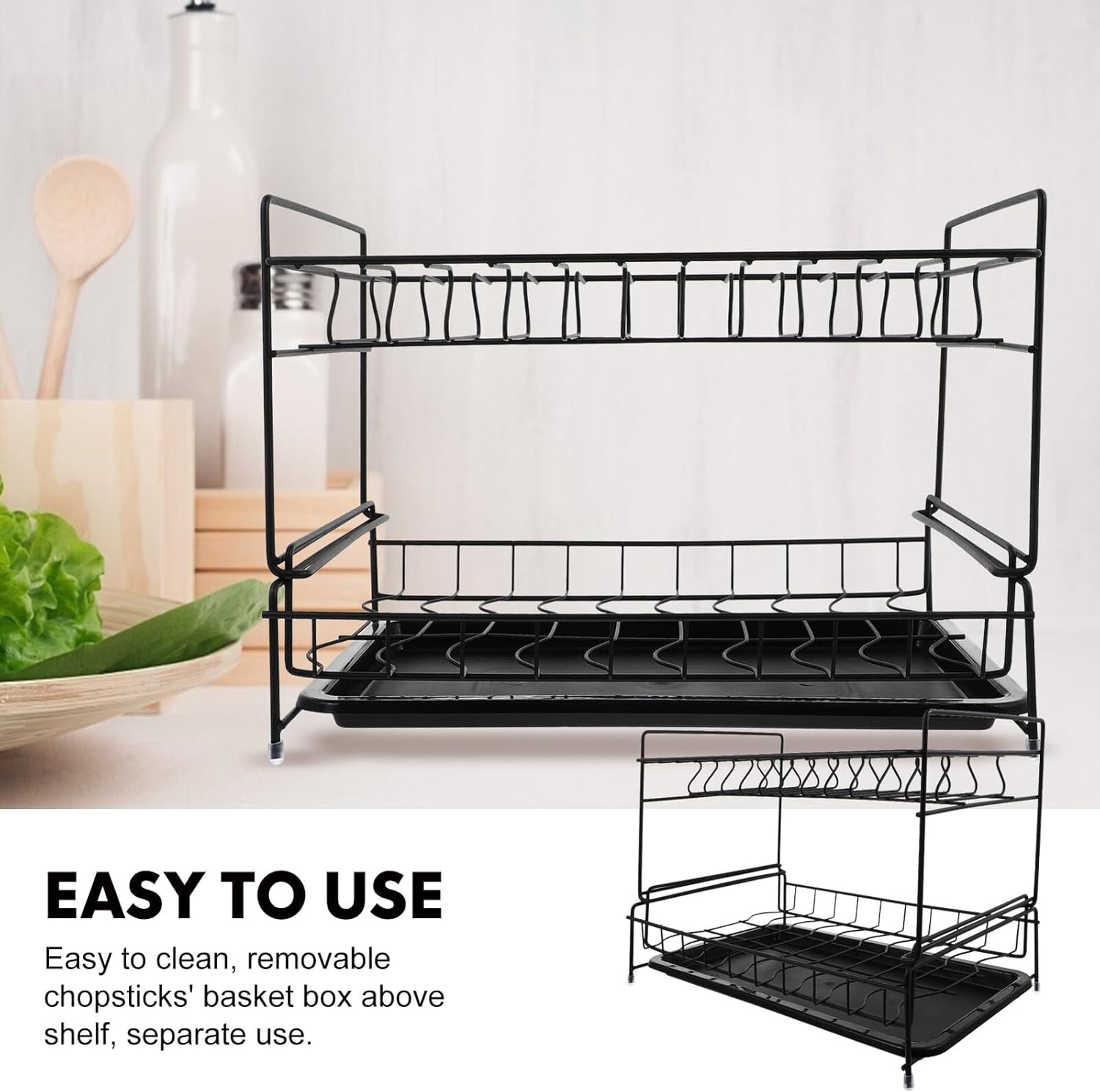 Package Include 1 x storage drain rack Features - Material: Iron - Color: Black -Product Info:Double-layer tableware storage rack - Size: About 36.00X23.50X25.00cm/14.15X9.24X9.82inch - Organize your home storage space, make it clean and orderly, get rid of the chaos Kitchen Plate Holder. - Use this storage rack, you don’t need to buy other one because one do multiple purpose Simple Draining Rack. - Easy to clean, just use water to was it, and then it will be dry quickly Kitchen Storage Holder. - Keep the countertop and dinner table clean and neat. Create a perfect kitchen for you Kitchen Storage Rack. - Vertical draining, not bad substance, make your healthy life more easy Storage Shelf.Goods DescriptionKitchen Storage Shelf Dish drying rack with drainboard combines classic with functionality, keep your counter clean and dry.Plate Rack This drying dish rack has an integrated drip tray to keep water flowing directly into the sink, not onto the countertop.Kitchen Storage Rack You can put drying rack at any direction per counter and