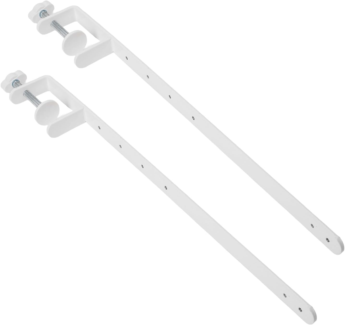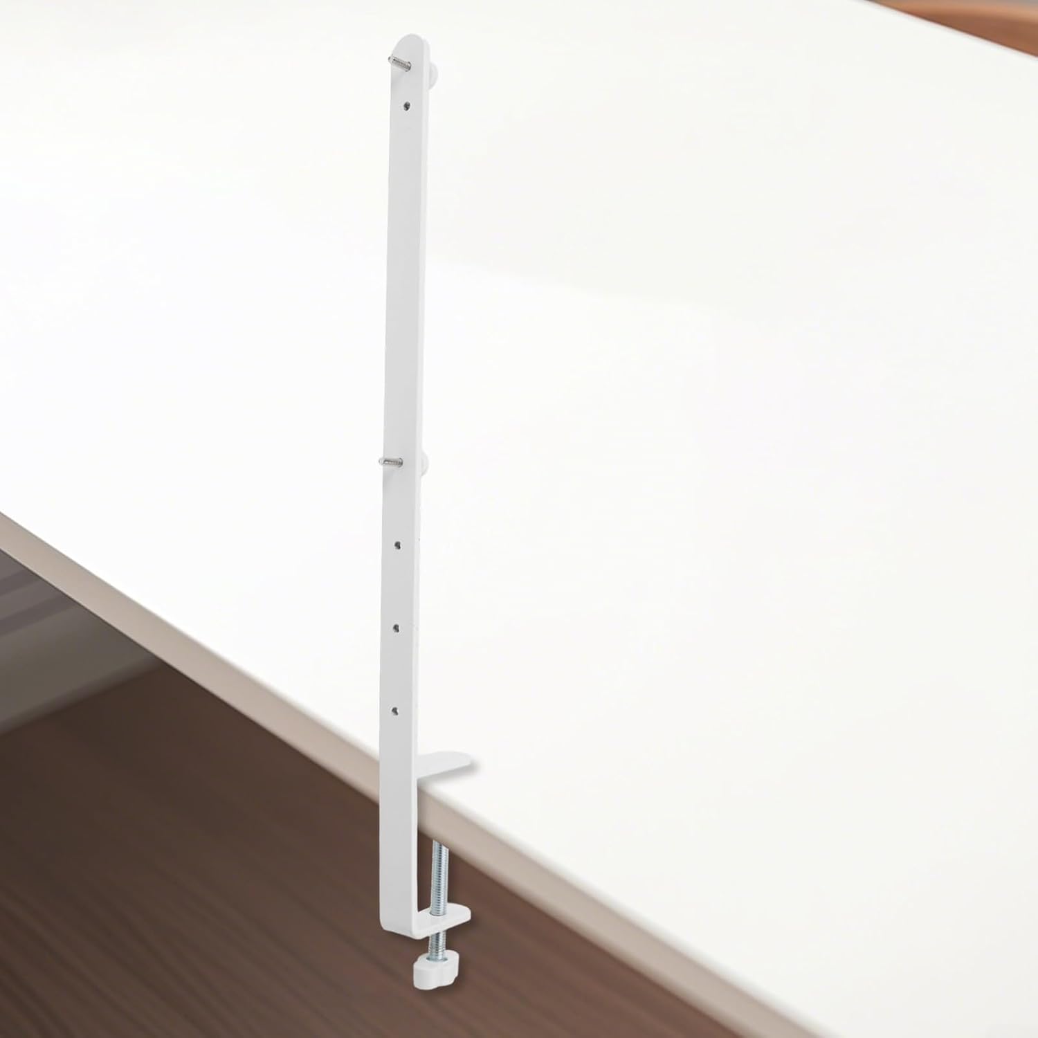 Features:*Versatile Functionality: This desk clamp is designed for multiple uses, making it an good solution for securing items on various surfaces, including pegboards in your gaming setup, living room, office, or kitchen.*Innovative Nailless Design: The unique nailless construction allows for easy installation and repositioning, giving you the freedom to adjust the bracket's position without leaving any marks or requiring tools.*Robust Size Specifications: Measuring 41.5cm in height and compatible with desktop ranging from 1-5.5cm in thickness, this clamp accommodates a wide variety of setups, making it meets the demands of everyday use.*Long lasting Metal Construction: Crafted from metal, this fixing bracket offers a strong structure that ensures excellent load-bearing capacity, making it suitable for holding heavier items securely.*User-Friendly Installation: This desktop fixing bracket is designed for no hassle assembly and disassembly, allowing users to effortlessly set up or change their workspace as needed without complications.Specifications:Part Name:Desk ClampMaterial:ppSize:415*50*20 mmColor:whitePackage Content:2 * Desktop clamp bracketNote:1. The real color of the item may be slightly different from the pictures shown on website caused by many factors such as brightness of your monitor and light brightness.2. Please allow slight manual measurement deviation for the data.