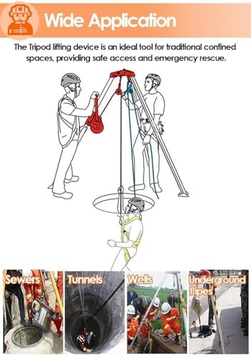 Emergency Fire Rescue Rope System: This confined space entry kit has a large load capacity and durable iron and alloy construction, which can provide passage or fall protection in confined spaces such as wells, sewers, tunnels, etc. It is lightweight, foldable, and easy to disassemble, allowing the storage of the tripod to be convenient for transportation. SpecificationsMaterial: High-strength lightweight aluminum alloyWireCable length: 1200LBS winch-20m/65.6ft-diameter 4mm, 1800LBS winch-25m/82ft-diameter 5mm, 2600LBS winch-30m/98ft-diameter 6mmSafe load capacity: 1200LBS winch safe load 200KG/440LBS; 1800LBS winch safe load 250KG/550LBS; 2600LBS winch safe load 300KG/660LBSManual handle force: 500NManpower winch continuous efficiency: 8:1Adjustable leg length: 1.34-2.14m/4.4-7ftSafety factor: 10Color: SilverFeaturesDie-cast top cover thickened steel plate, strong load-bearing capacity.The hand winch is equipped with rising and falling self-locking devices up and down, which is safer to use. The square tube is firmly connected, and the winch clamp aluminum alloy bracket has 7 adjustment holes on the bracket, and the adjustable height is 1.34m-2.14m. The non-slip feet increase the friction area and the structure is very solid. With a fall arrester, it fully protects the safety of the user and prevents falling during rescue construction. Hey, my friend: Note: The products may have different stocks, so they may be sent separately. . Package Contents: 1 x Confined Space Tripod Kit (Including Winch, Steel Cable, Safety Belt) Note: Manual measurement, there will be an error of 1-3 cm, please understand that due to differences in light and personal understanding of color, there will be small color differences, please refer to the actual product
