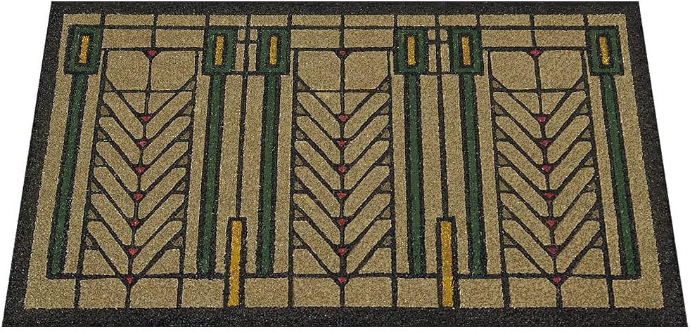 The Frank Lloyd Wright Colored Tree of Life Design Doormat is inspired by several variations of this design with its strong horizontal lines and planes in Wright’s Darwin D. Martin House. This doormat is constructed in coir fiber pressed into rubber base. The generous proportions of this mat are 30 inches by 18 inches.