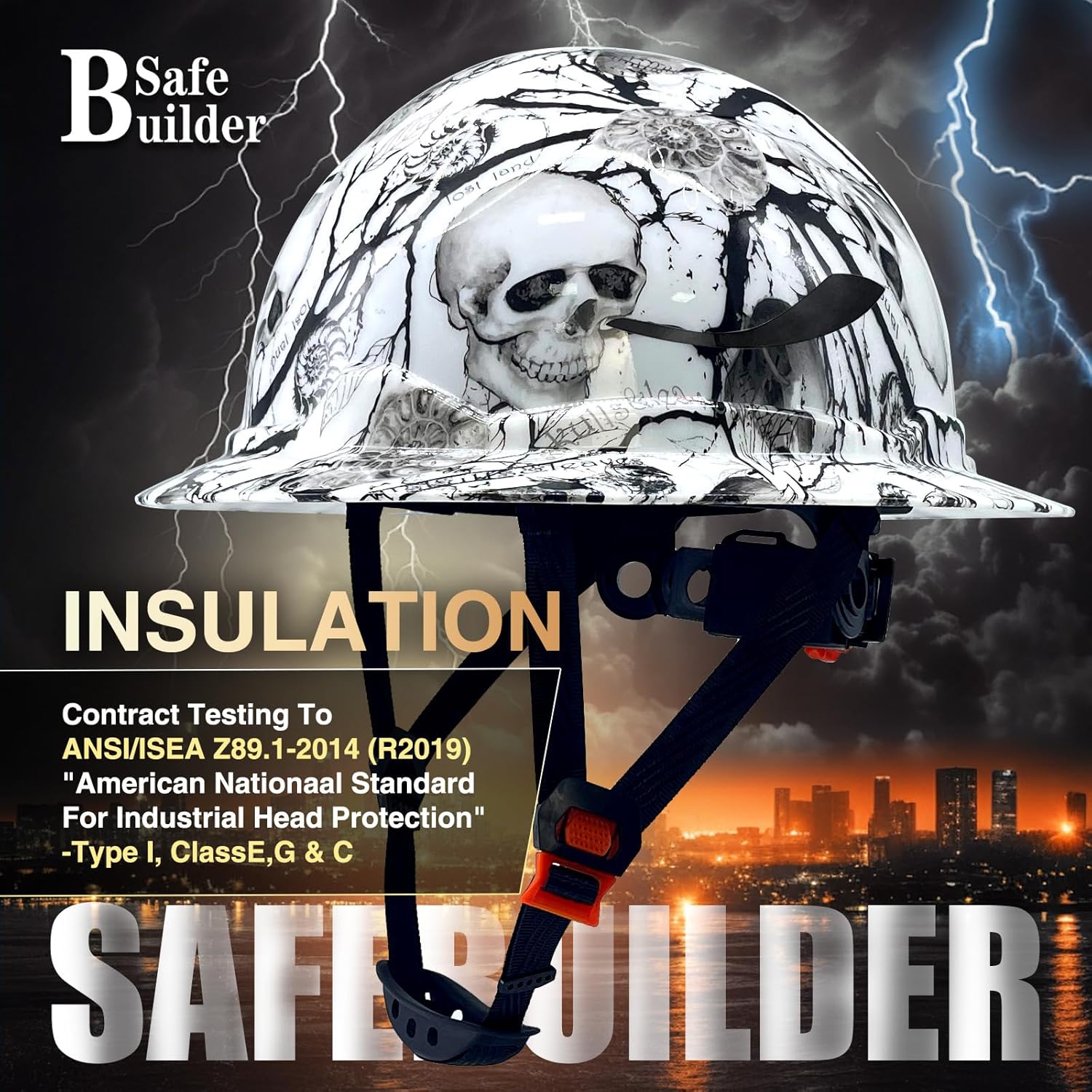SAFEBUILDER G1E Construction Full Brim Hard Hats ANSI Class E HDPE Safety helmet Vented Hardhats Sunshade Industrial Head Protection