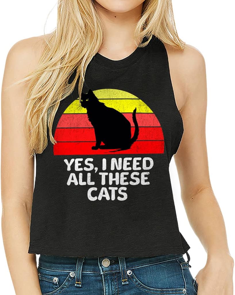 Cute and flattering I Need All This Cats Racerback Cropped Tank is suitable for most indoor or outdoor activities, such as gym, yoga, running, hiking, beach or relaxing around the house. Pair Retro Style Women's Tank with your favorite sports bras, especially strappy ones, and high-waisted leggings, then you will enjoy cool and comfortable exercise throughout the summer.