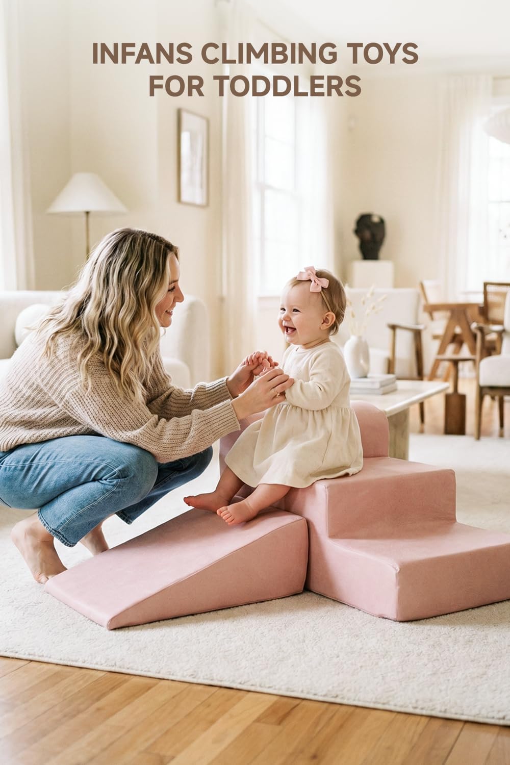 Why do you choose INFANS Climbing Toys for Toddlers?INFANS climb and crawl play set provide excellent rebound and durability, ensuring long-lasting use for active little climbers. Give them the confidence to explore and play safely with reliable support beneath them. Create a creative playground for kids. For the ultimate comfort experience, this climbing blocks features a soft and stretchy 25D filling sponge. Watch child develop their physical coordination, balance and motor skills by playing with this soft sponge climbing block that comes in a variety of shapes and colors. What's more, by stacking and combining blocks, children can learn about shapes, sizes, colors and spatial relationships, stimulating their creativity and imagination and allowing them to have endless fun.(hold up to 100 pcs balls, balls not Included)Features:Safe & Smooth Hidden Zipper Create exclusive children's playgroundsSoft and stretchy 25D filling spongePlease wait 48hours for it's full expansionASTM and CPSIA compliant for enhanced securityStimulate children's imagination and creativityGreat playset furniture for family interactionThe best choice for birthday and Christmas giftsEasy to clean with removable and machine washable coversHigh density filling provide a comfortable environment for kidsSpecification:Color: Grey/ Pink Material: Suede, SpongeProduct Dimensions of Ball Pit: 24” x 18” x 12” (L x W x H)Product Dimensions of Slide: 22.5” x 18”x 8” (L x W x H)Product Dimensions of Step: 23.5” x 18.5”x 11.5” (L x W x H)Product Dimensions of Half Moon: 18”x 12”x 9.5” (L x W x H)Product Dimensions of Concave: 18” x 12” x 7.5” (L x W x H)Suitable Age: 3+ Years OldNet Weight of Ball Pit: 2.6 lbsNet Weight of Slide: 2 lbsNet Weight of Step: 3.7 lbsNet Weight of Half Moon: 2.4 lbsNet Weight of Concave: 1.5 lbsPackage Includes:1 x 5-Piece Soft Play Set1 x User Guide