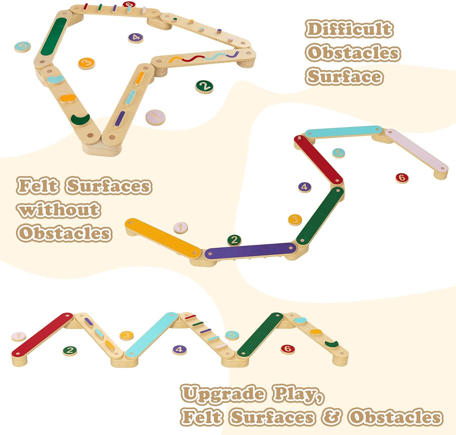 Wooden Balance Beam Stepping Stones for Kids, Double-Sided Montessori 12 Piece Obstacle Felt Course Gymnastics Toy Furniture for Toddler Indoor Outdoor, Build Coordination Gross Motor Skills
