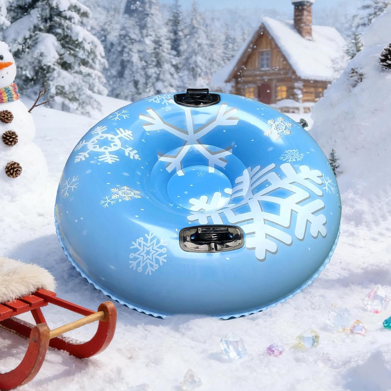 The Winter Sledding Ring is an inflatable outdoor product designed for winter fun and recreation. This versatile ring is perfect for snow activities, making it a great companion for sledding on frosty walkways or slopes. Its lightweight and portable design allow for easy transport, whether you're heading to a gathering, party, or the beach. Beyond snow use, this inflatable ring can also enhance poolside sports and entertainment during warmer seasons.Specificationlight blue:Size:Before inflating diameter about 120cm/47.24 inchesAfter inflating diameter about 110cm/43.31 inches, height about 33cm/12.99 inchesThickness of printing surfaces about 0.045cm/0.02 inches, bottom thickness about 0.045cm/0.02 inchesWeight about: 1500gMaterial: PVCDark blue:Size:before inflating diameter about 120cm/47.24 inchesafter inflating diameter about 110cm/43.31 inches, height about 33cm/12.99 inchesPrinting thickness about 0.035cm/0.01 inches, bottom thickness about 0.05cm/0.02 inchesApproximate weight: 1340gMaterial: PVCProduct List:1* Inflatable Snow TubeNote:Due to different lighting and screen settings, the item color may be slightly different from the picture.Due to different manual measurements, please allow a 1-2cm difference in size.