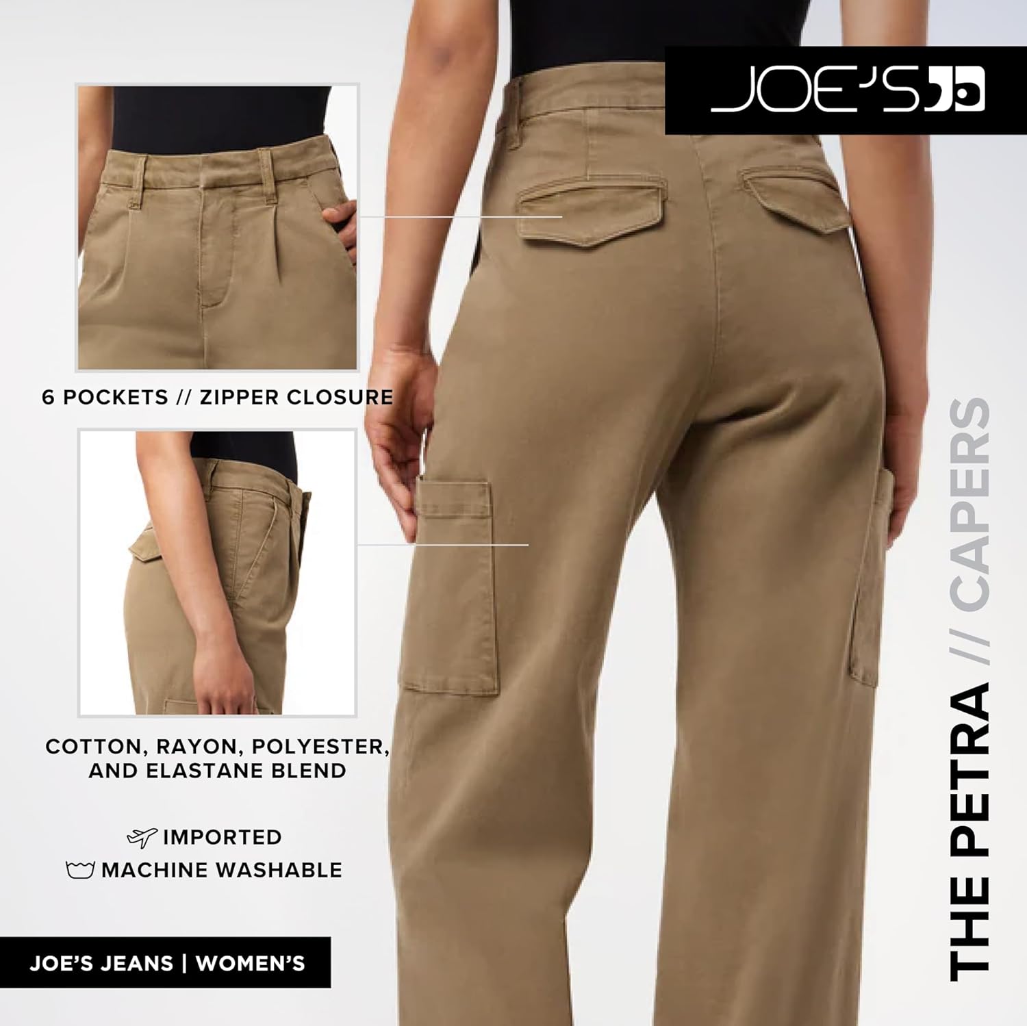 Classic cargos get a feminine revamp with The Petra--styled in a comfortable stretch twill. This effortlessly cool, wide leg pant has a high rise with front pleats and trouser pockets. The overdyed black shade is finished with a deep hem and cargo pockets.