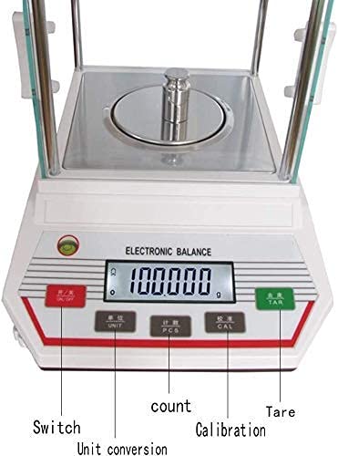 High precision 0.1g laboratory balance analysis electronic scale Product specifications Screen display: white LCD Maximum weighing: 100g/200g/300g/500g Accuracy: 0.01g Windshield: glass Weighing plate:φ 130mm Electronic scale: 30*8.7*3.9 in Unit conversion :g、ct、Ib、oz、kg Operating temperature: 5-35°C Relative humidity:50-85% Weight: 5kg Warm up: 3-5 minutes The weight on the balance is biased: the lower horizontal line Overweight display: upper horizontal line Low battery voltage: blank display Feature: It has functions such as Tare, self-calibration, counting, and fault display. LCD-backlit display for clear readings at night. Suitable for industry, agriculture, commerce, school, scientific research, etc. Packaging includes: Laboratory balance×1 Instruction manual ×1 Power cord ×1 Weight ×1 The surface of our electronic scale is completely flat, there is no unevenness, and it is very easy to clean.