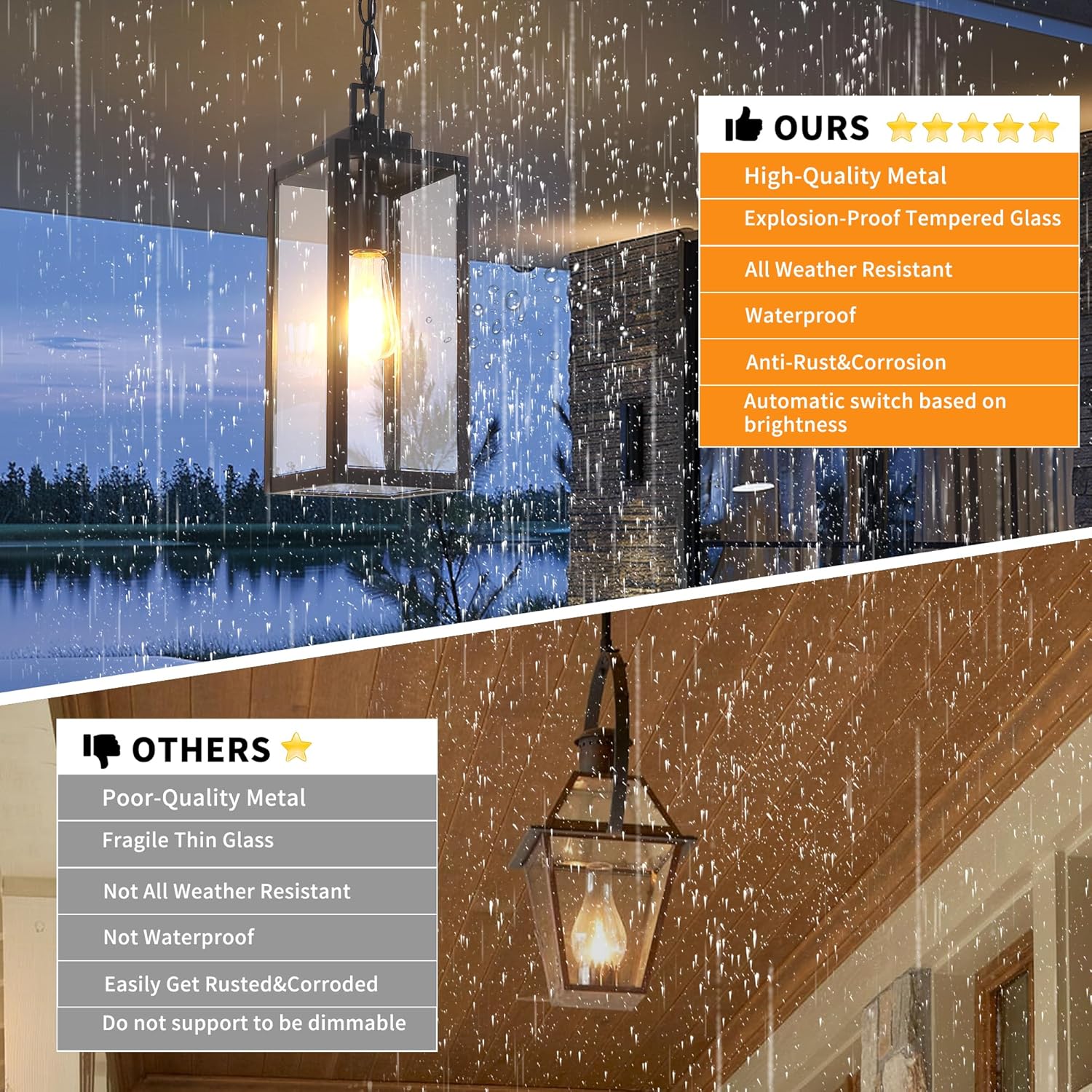 Large Outdoor Pendant Light Fixture Waterproof 15 inch Outdoor Hanging Porch Light Anti-Rust Exterior Hanging Outdoor Lantern for Porch Yard Front Door Garage Balcony Patio Garden