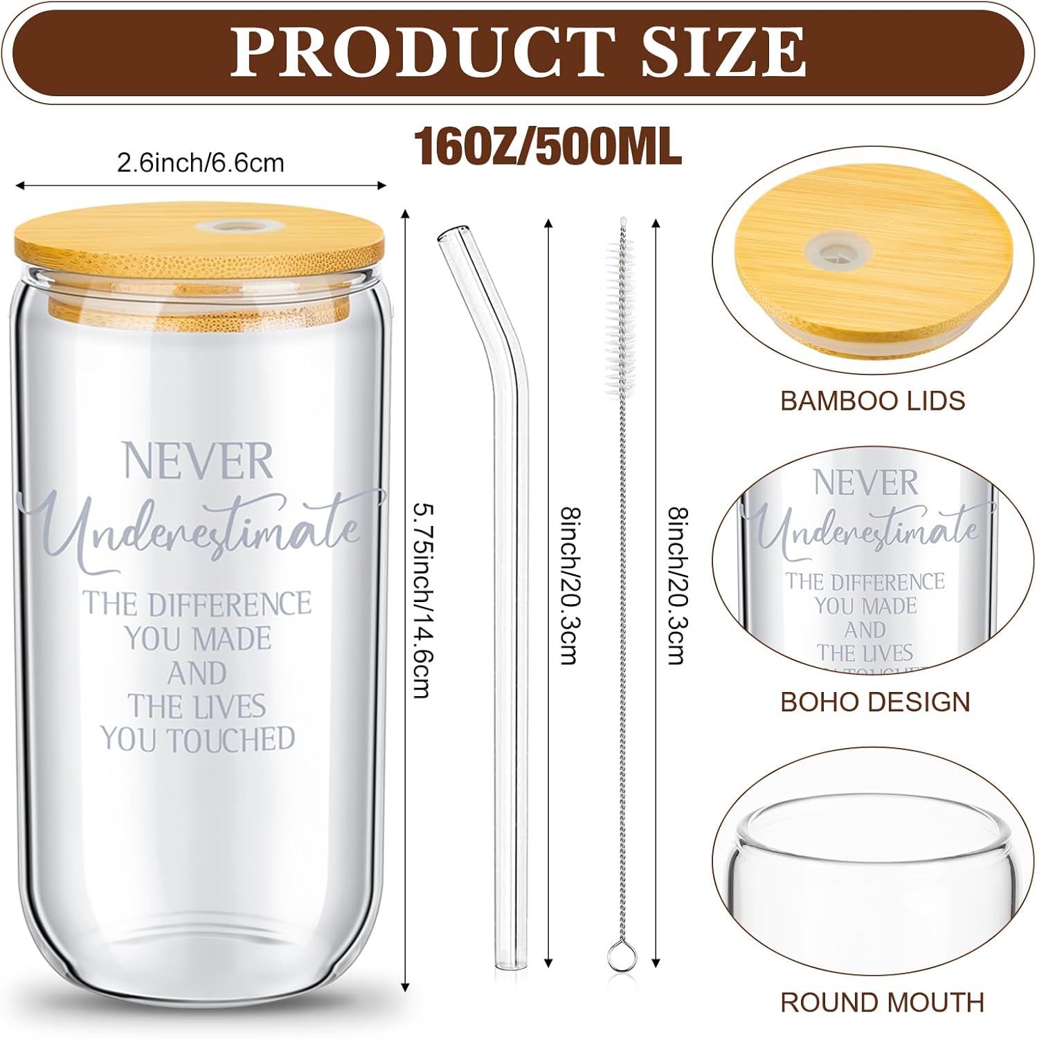 | Included Components | 24 x Glass cups with lids, 24 x Straws brushes, Straw |