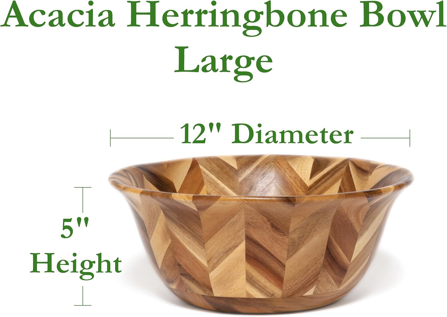 The herringbone design creates a beautiful striated pattern on this bowl. We decided to keep the natural colors intact and didn’t cover the wood with a different color finish. The patterns in the acacia wood come through in gorgeous texture and are perfect for adding visual interest to your tabletop. Perfect for serving everything from individual salads to movie-night popcorn, this beautiful wooden bowl is crafted from durable and attractive acacia wood. The timeless look of wooden serve ware coordinates with nearly every decor style. Great for making a statement when hosting, or just for serving a weeknight dinner beautifully. Fun and festive, you'll find our acacia wood serve ware bowls at the center of your table for years to come. Hand wash with a mild soap and cool water. Do not soak. Do not put in the dishwasher, microwave or refrigerator. Extreme changes in temperature will cause the material to crack over time. Dry thoroughly. Occasional use of mineral oil on the inside will help maintain its appearance.