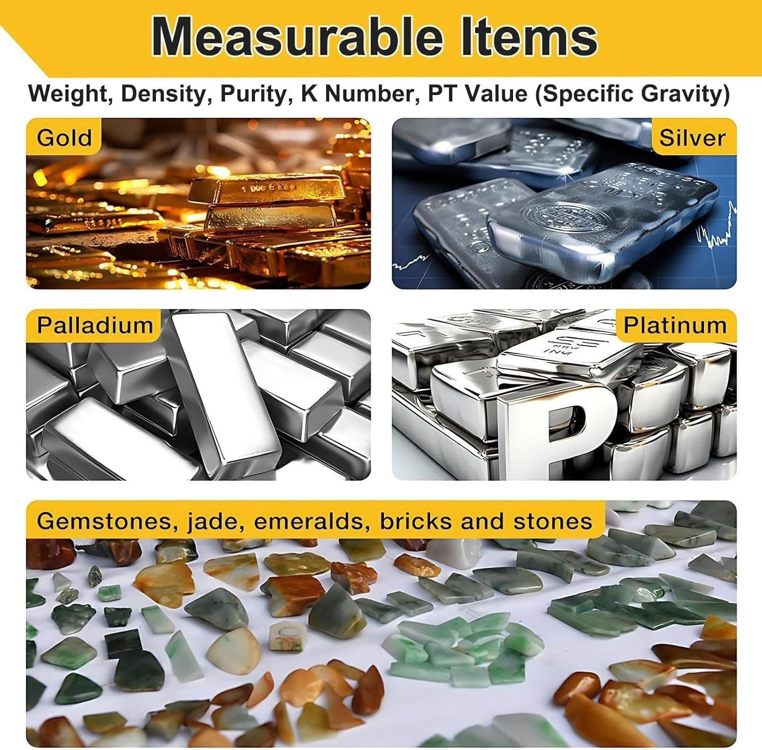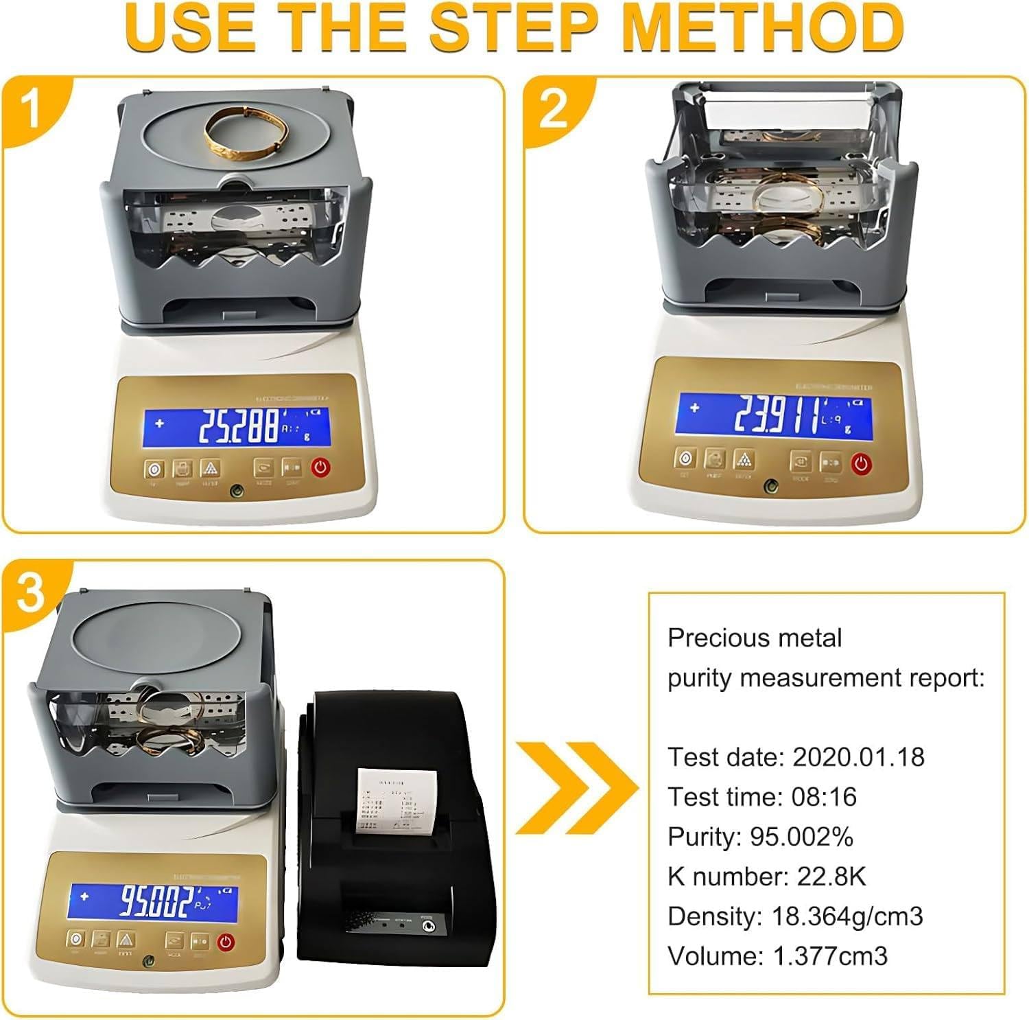 Are you looking for a reliable solution to weigh precious metals with precision? Our digital electronic purity testers are designed to meet the demands of jewelers and metal traders who require accuracy and efficiency in their operations. With various models suited for different weighing capacities, you can find the perfect fit for your business needs.✅ **Available Models**- **MDJ-300K**: Max Weight 300g, Accuracy 0.01g, Ideal for samples of 5g and above.- **MDJ-600K**: Max Weight 600g, Accuracy 0.01g, Recommended for samples of 5g and above.- **MDJ-1200K**: Max Weight 1200g, Accuracy 0.01g, Best for samples starting at 10g.- **XF-300K**: Max Weight 300g, Accuracy 0.005g, Suitable for samples of 5g and above.- **XF-600K**: Max Weight 600g, Accuracy 0.005g, Ideal for samples of 5g and above.- **XF-1203K, XF-2203K, XF-3203K**: Offer exceptional precision for lighter samples, with accuracy up to 0.001g.✅ **Precision and Display**Our digital testers ensure accurate data display, including density, purity percentage, and karat value for various metals. The MDJ series and XF models provide detailed readings to help you make informed decisions.✅ **Versatile for Different Metals**These testers can measure a range of precious metals, including gold, platinum, silver, and palladium, making them essential tools for jewelers and metal refineries. Each unit displays relevant metrics such as density, volume, and purity, tailored to the specific metal being tested.✅ **User-Friendly Features**Equipped with standard RS232 communication for easy connectivity, our testers operate on a wide voltage range (AC100V~240V, 50HZ/60HZ). The compact design (430mm x 200mm x 370mm) and lightweight (3.2kg) make them suitable for any workspace.✅ **Included in the Package**- 1 x Digital Electronic Purity Tester- 1 x Printer (OPTAL)Invest in our digital electronic purity testers...