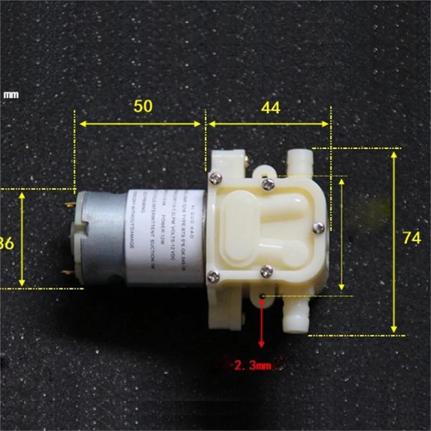 Dosing PumpsFeatures:Flow rate: 1.0-1.2LPM (L / min)Rated voltage: 12V DCCurrent: 0.1-0.4 APower: 12WSuction stroke: 1mThe highest lift: 5-10 metersMaximum pressure: 1-2 kgNoise: Because the pump pumping is very the noise is relatively large.Use: water pump in tea tray, etc.packing include:1pc*pumpLength: 16mmOuter diameter: 10mmInner diameter: 6mmDistinguish the inlet/outlet: the circled outlet is the outlet (or idling with your fingers and suction is the inlet).Application : SubmersibleTheory : Reciprocating PumpStructure : Diaphragm PumpModel Number : 545 Self-priming water pumpStandard or Nonstandard : StandardPressure : Low PressureUsage : WaterFuel : ElectricPower (W) : Electricproduct number : LB1512voltage : DC 12Vfrequency : 50Hz / 60HzFlow : 1.0-1.2LPM L/MINpower : 12Wcurrent : 0.1-0.4 ALift : 1m