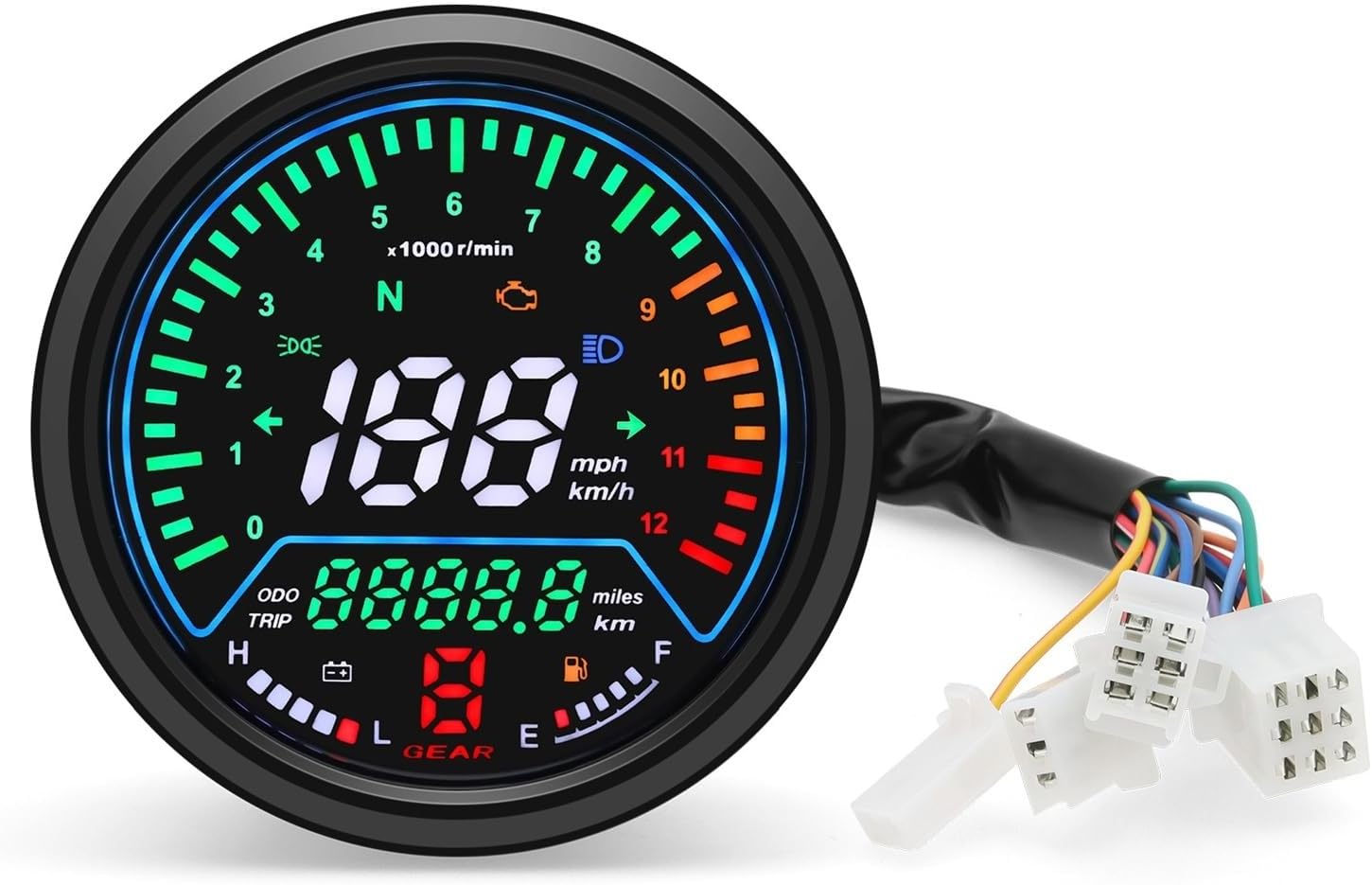 Multi-functional Instruments 12V Motorcycle Tachometer Odometer Tachometer Meter Fuel Level Meter Indicator Led Round 12000rpmPackage Contents:1x Motorcycle Special Features : Universal Motorcycle GaugeModel Name : Motorcycle GaugeIf you have any installation questions, please feel free to consult our customer service team