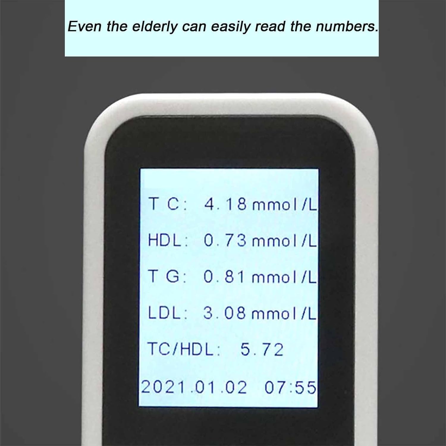 Feature: Simple: simple operation. Fingertip blood or venous blood Blood volume: 40 uL Fast: Results in 2 minutes Accurate: compared to a clinical chemistry analyzer, the result is accurate Portable: Portable Specification: Product Name: Blood Lipid Detector Sample type: Whole blood (peripheral whole blood or venous whole blood) Test strip features: less blood consumption Calibration sample: venous plasma Energy saving mode: 2 minutes without any operation, the instrument will automatically turn off Storage: 500 data sets HDL measuring range: 0.39 mmol/L-2.59 mmol/L TC: 2.59 mmol/L-10.35 mmol/L XL: 0.51 mmol/L-5.56 mmol/L Storage conditions: 10℃~35℃≤80% humidity Instrument size: 135*60*25mm Power supply: 4 x AAA batteries (not included) Packing list: Host*1 Blood Lipid Test Strips*25 Blood Lancet*25 Blood Collection Tubes*25 Alcohol tablets25
