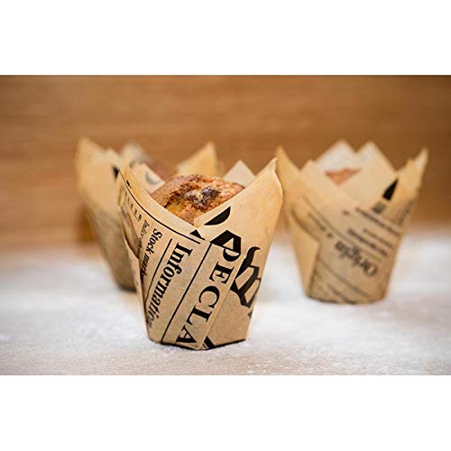 About PacknWoodPacknWood is the American brand of a family-owned, well-established French manufacturer that specializes in the design and manufacture of elegant disposable food packaging. For over 35 years, PacknWood has made it their goal to design fashionable, functional, and environmentally sustainable tableware that adds a special touch to your culinary presentation – something we believe your customers will notice and appreciate. PacknWood offers the largest selection of plates, skewers, mini dishes, bakeware, and tableware, which are made from the most unique and natural materials: Bamboo, Wood, Palm Leaf, Sugarcane, and Cornstarch - all with a French touch to the design and presentation. The idea is simple: we create value using natural, organic, and recyclable materials. Our smooth and elegant finished products make the food you serve more enticing, all while preserving the environment.Safe MaterialMade of high-quality oil and grease-resistant paper, these paper tulip cupcake baking cups are thick, smooth and high-temperature resistant, no peculiar smell, and no leaking dyes. Keeping their elegant shape during baking, pretty reliable to use, safe and environmentally friendly, durable, not easy to deform, but easy to peel, and nice tools for you to make muffins.Gorgeous Tulip DesignThe paper muffin liners for baking are in a delicate tulip shape, a great shape of visual excitement, which makes your desserts more attractive and delicious, great for displaying cupcakes at parties, leaving a deep impression on your guests too.Product Specifications: Material: PaperColor: NewspaperQuantity: 288 PcsDimensions:L: 6.9in x W: 6.9in x H: 2.35in