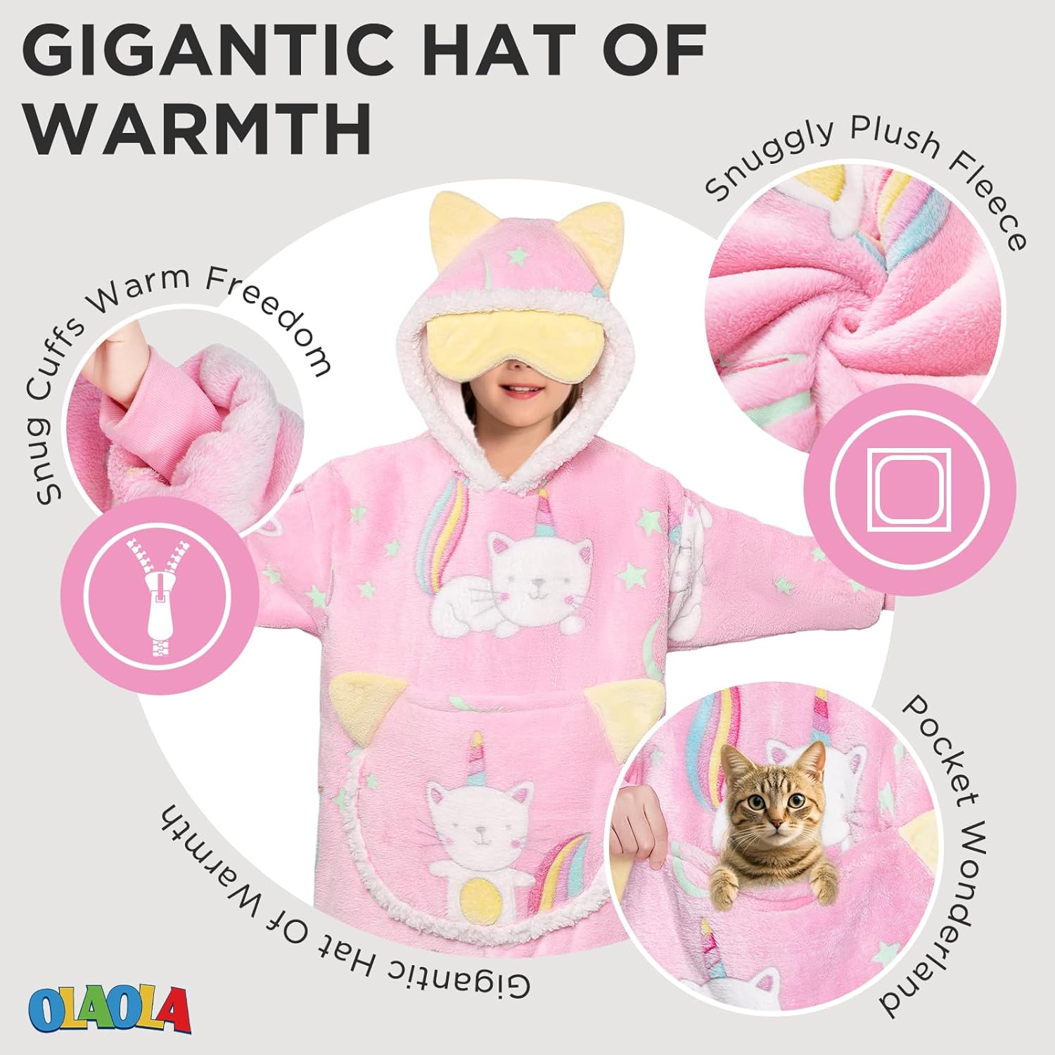OLAOLA Wearable Blanket Hoodie Glow in the Dark, Oversized Blanket Hoodie with Pockets Cute Birthday Christmas Gifts for Kids