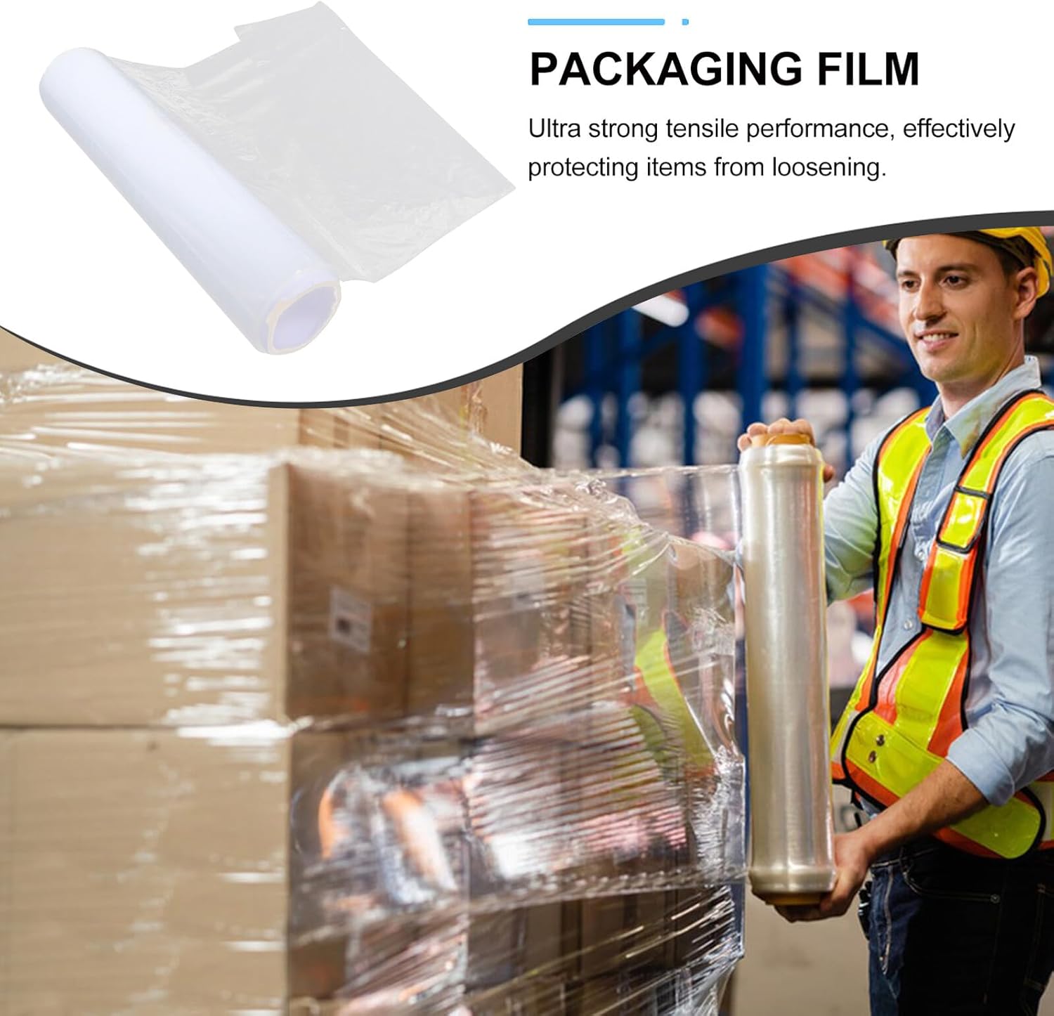 Package Include 1 x packing film Features -Color:Transparent -No Adhesive wrapping: features strong selfadhesive properties, eliminating the need for extra tapes or fasteners clear industrial wrap -Size:47.00X11.00X11.00cm/18.47X4.32X4.32in -Crystal clear visibility: allows for easy identification of wrapped items, enhancing efficiency in storage and transportation stretch film wrap. -Protective barrier: shields your items from water, dust, and other environmental factors, maintaining their condition machine stretch film -Product Info:Stretch film Save time, money and east to apply: Pre stretched films are easy to apply giving you improved productivity, makes wrapping pallets easier and more efficient. There is no need to stretch the film to get maximum load holding as the film has been pre-stretched wrapping film -Exceptional elasticity: delivers high stretch capacity, ensuring tight and secure wrapping that holds items firmly together suitcase wrap -Material:HDPEGoods Descriptionwrapping film Our stretch wrap is easy to apply as the film is already pre-stretched so it requires less tension and can be used quickly and easily.industrial cling film Discover the wrapping solution with our hand wrap film, designed meticulously for wrapping boxes, bundling essentials, and ensuring pallets are wrapped securely