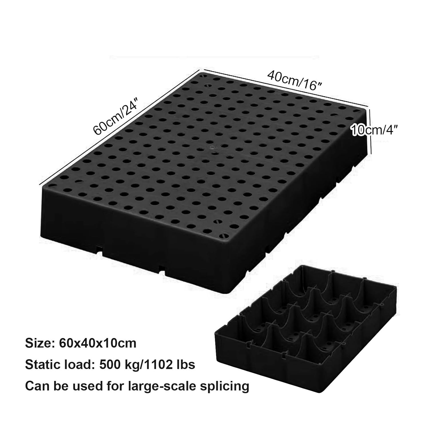 CLLXDZ Plastic pallets for basement storageMaterial: HDPEColor: BlueSize(L x W x H)30x20x10cm/16x12x4in40x30x10cm/16x12x4in50x30x10cm/20x12x4in50x40x10cm/20x16x4in60x40x10cm/24x16x4inLoad-bearing:500kg/1102 lbs