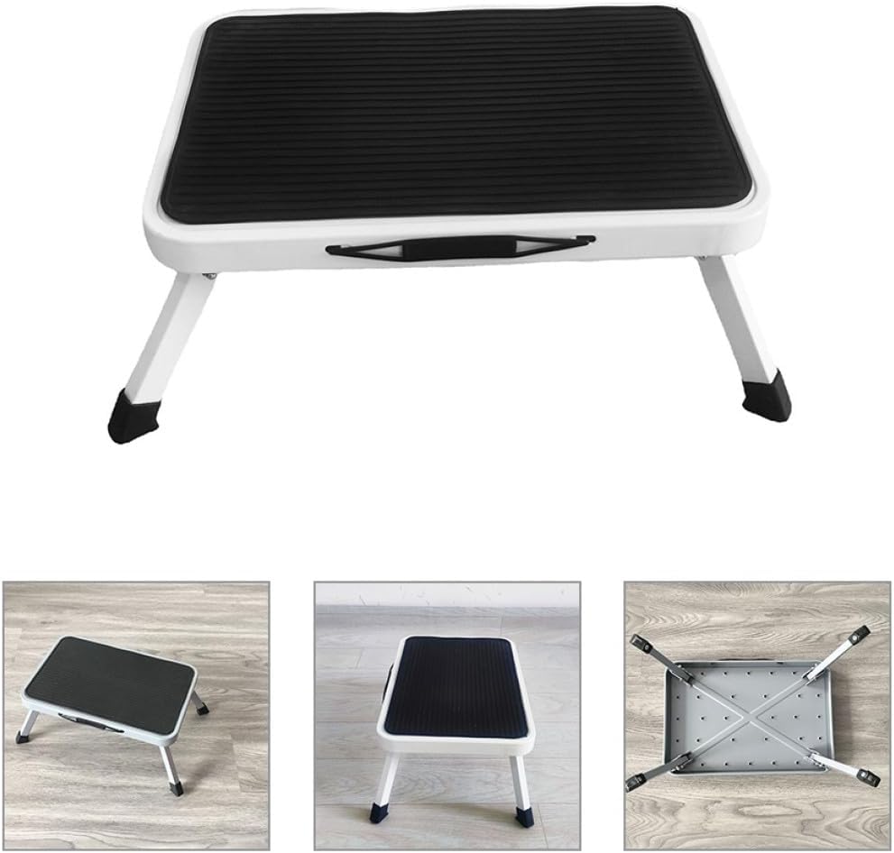 Package Include 1 x foldable step stool Features - Size: 43.50X27.00X17.50cm/17.10X10.61X6.88in -Product Info:Portable folding stool -Note: There is color difference -Material:Rubber, iron -Color:Black -This portable step stool is designed for household use and is foldable for easily storage, can be convenient shower step stool -This stool is suitable for various activities, such as changing light bulbs, foldable design allows for storage easily. step stool for kitchen -This step stool is made of sturdy metal and features a thick and spacious platform, providing stability and comfort step ladder small. -This step stool is ideal for various indoor tasks such as reaching high shelves, changing light bulbs, or cleaning step stools for adults. -This stool is made of sturdy metal and features a nonslip platform to ensure safety during use in daily life. lightweight non-skid stoolGoods Descriptionbathroom step stool This is a portable step stool for many kinds of people to use, made of metal and rubber material, safe and sturdy, can serve you for a long term.step ladder for kitchen With detailed craftsmanship, simple but reasonable structure design, nonslip and has excellent load-bearing capacity, can meet your needs better and bring you a satisfying experience