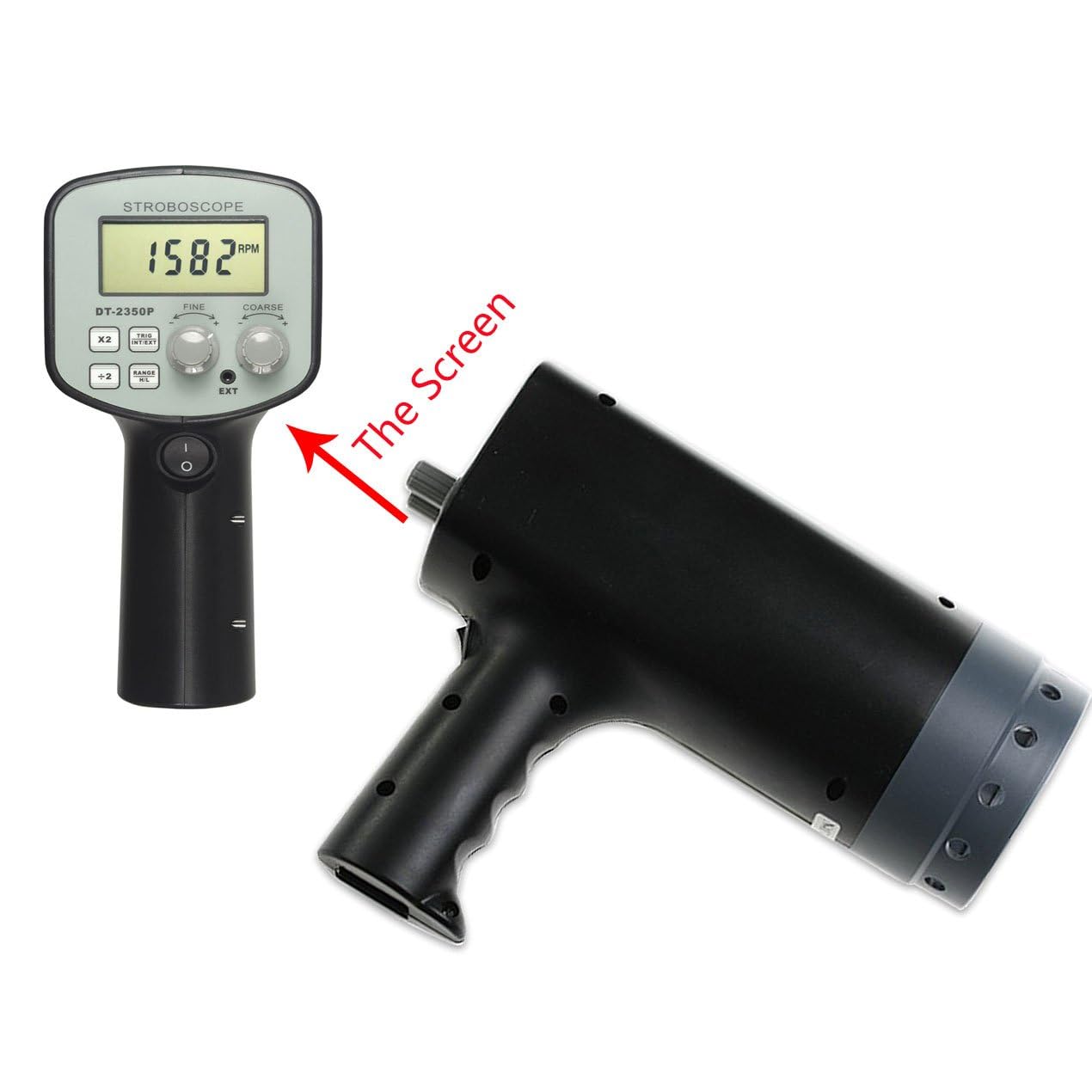 The Stroboscope is capable to provide image of single, two or multiple stillness for the vibration object, rapidly rolling object, can also use to observe the movement tracks. Feature * Digital display gives exact reading with no guessing or errors; Wide measuring range and high resolution. * Automatic stop flashing to save electricity and improve flash tube lifetime. * Internal / external triggering fast conversion; x2 and ÷2 button for fast adjustment. * Use photoelectric signal while external triggering, achieve automatic tracking function of the pattern. * Use microcomputer technology, emerging technologies, anti-jamming technique and other advanced technology, it can measure the rotative velocity without contacting the object. Technical Specifications Display : LCD Range : DT-2350PD: 50~30,000 FPM Resolution : 0.1 FPM(50~999.9 FPM) ; 1 FPM(Over 1000 FPM) Accuracy :±(0.05%n+1d) Sampling Time: 0.3 Seconds Internal / External Triggering Conversion External Trigger Level: 3~24 V H/L Range : Flashing Light is much Brighter at Low Range than at High Range With x2 , ÷2 for Fast Check Flash Tube Life :100 Millian Times Operating Conditions: Temperature:0~40ºC , Humidity:<85%RH Dimensions :215x85x180 mm Weight :Abou 1000 g
