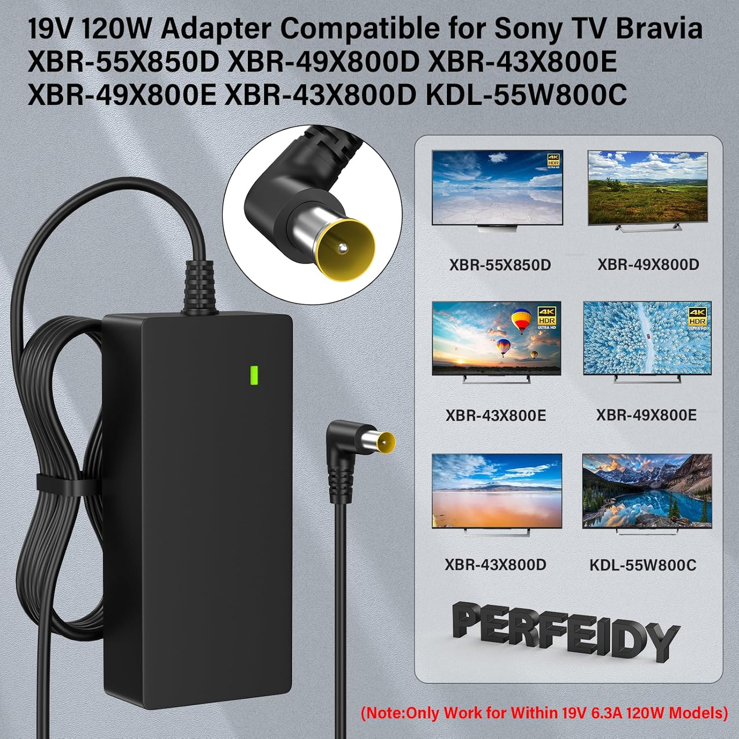 | Compatible Phone Models | compatible with Sony TV Bravia XBR-55X850D XBR-49X800D XBR-43X800E XBR-49X800E XBR-43X800D KDL-55W800C KDL-55W805C KD-49X720E KD-55X720E KDL-49W660E KDL-48R555C KD-43X720E (Note:Only work for 19V 6.3A 120W models) |