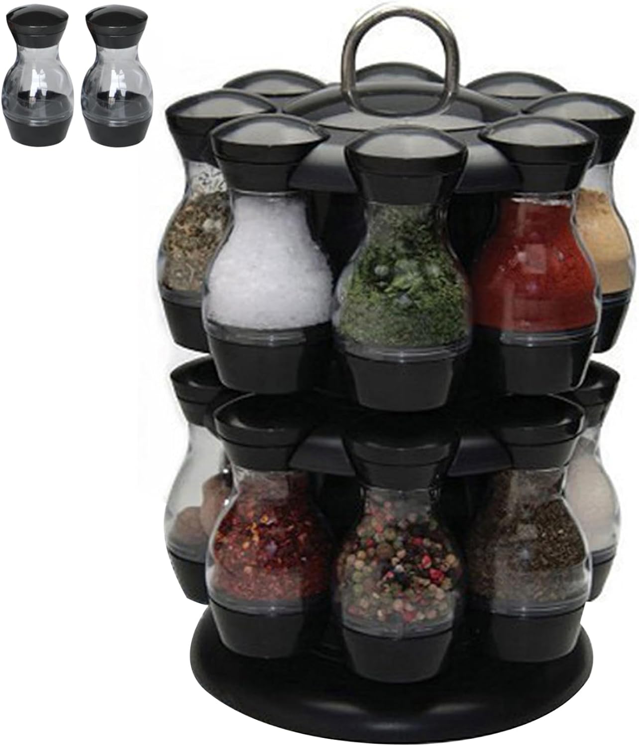 Rotating Spice Rack, 2 Layers Spice Organizer Storage with 16 Jar Bottles, Cupboard Organizer with Handle for Home Kitchen L, Racks Holders Description: This 2-layer spice organizer comes with 8 jar bottles, providing ample space for your favorite seasonings and herbs. Keep your kitchen clutter-free while having everything you need at your fingertips. Maximize your cupboard space with this compact spice organizer. Its rotating feature allows easy access to all your spices without rummaging through cabinets. Our spice carousel is designed with a convenient metal handle, making it easy to carry and move around your kitchen. Features:. Rotating Spice Rack. -Color: As shown. -Material: ABS+AS. -Size: L: 18.5x18.5x28 cm/7.28x7.28x11.02 inch. -Single Jar Bottle Capacity: 100ML. Note: Manual measurement, please allow slight errors on size. The colors may exist slight difference due to different screens. Package Including 1 * Rotating Spice Rack
