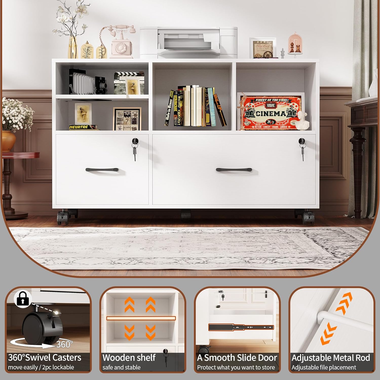 | Set Name | Semoic 2 Drawer Mobile Lateral File Cabinet - White |