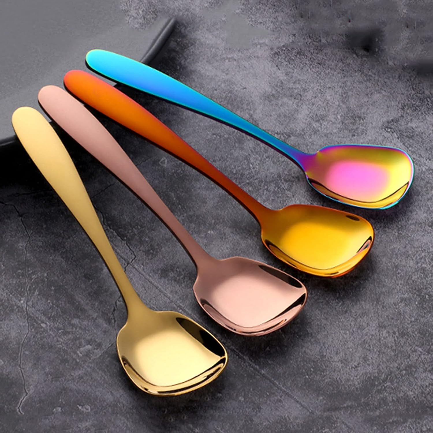 Product name: Shovel stainless steel spoon. Product material: stainless steel. Product colour: 7 colours, please refer to the product picture to understand. Applicable scenarios: family, all tables, restaurants, buffets, banquets, coffee shops, ice cream shops, cake shops, bars, etc. 1. Due to the different lighting and shooting angles, there may be slight chromatic aberration, please understand. 2. Please confirm the colour before purchasing. 3. Product photos do not include products other than products. 4. Manually measure the size, there may be some small errors, please refer to the actual product, thank you. 5. Do not use hard cleaning tools to clean the product, so as not to scratch the surface of the product. 6. Welcome to share and feedback, we can provide you with better products and services. 7. If you find any problems with our products, please feel free to contact us via email, we will solve these problems as soon as possible. If you have any questions, please contact us and we will solve it for you within 24 hours.