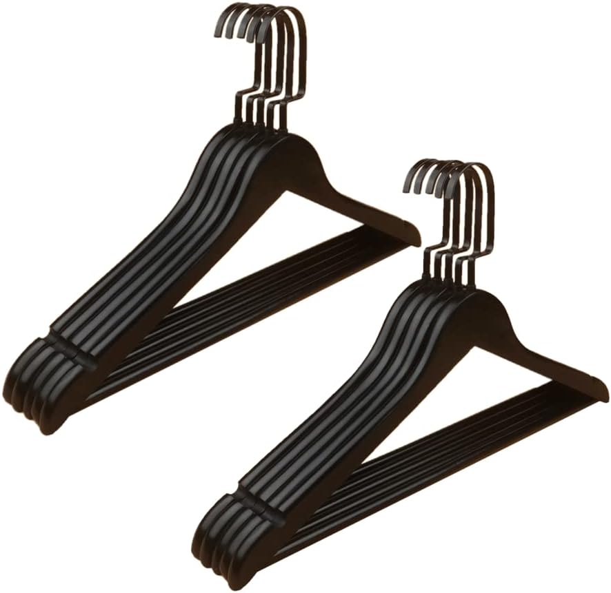 Name: hanger Material: wood Size: 45CMx1.2CM Quantity: 10 pieces This product contains only hangers Design: Non-slip technology on the shoulders and pant bar; grips and holds delicate clothing securely.