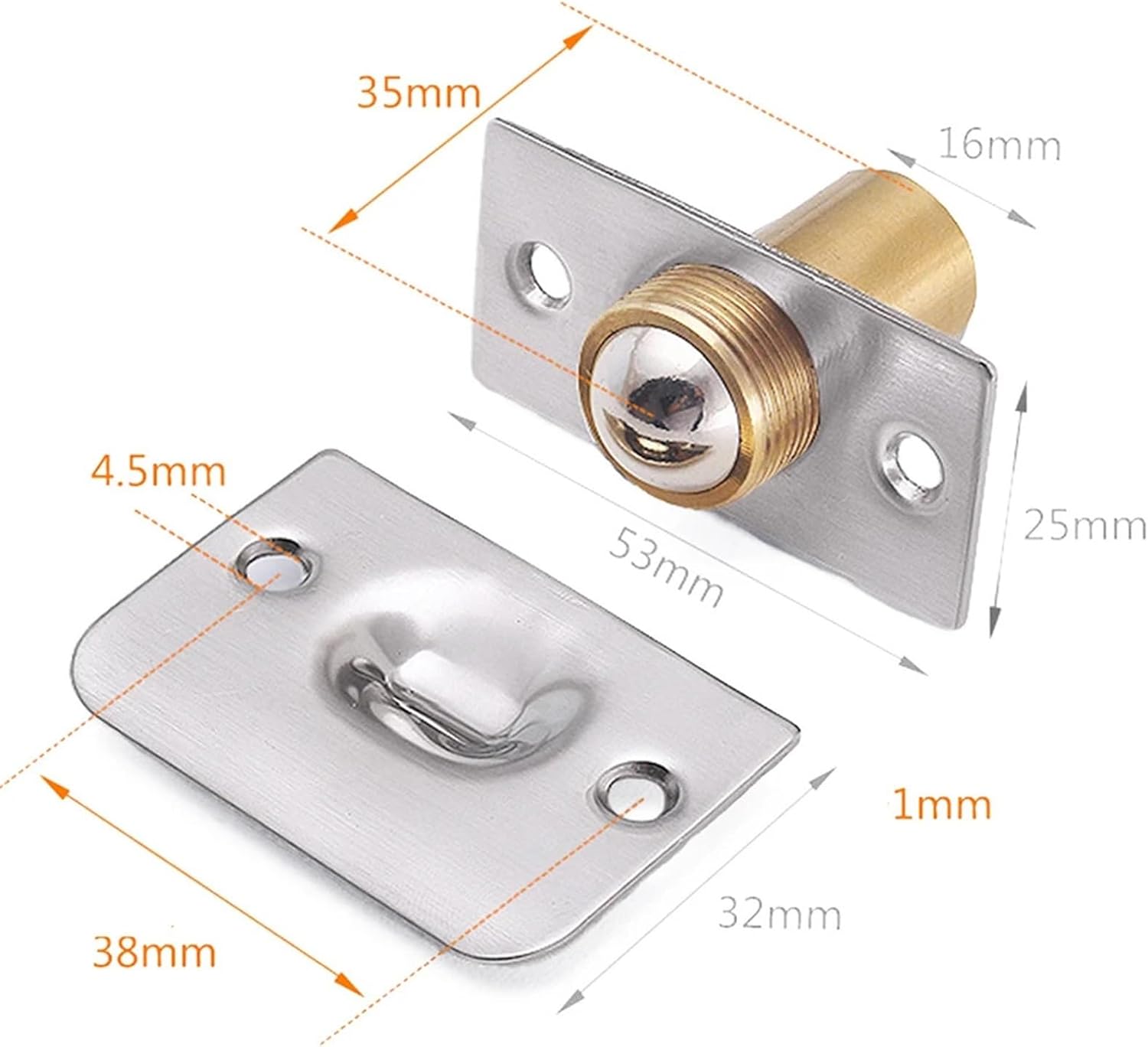 Drive PulleysFeatures:**Closet door ball catch is generally used on invisible doors where a latch is not used or needed.*The ball catch is mounted on the top of the interior door recessed in a hole drilled on the top surface.*Adjustable Ball Tension: Dual adjustment ball bearing door catch for perfect strong tension to accommodate the exact amount of hold you need in any situation.*Widely used for holding doors without a latch closed, such as swinging doors, double closet doors or French doors.Specification:Material: Stainless steelColor: SilverPackage Contents:2 x Door catch4 x ScrewsNote:1. The real color of the item may be slightly differe
