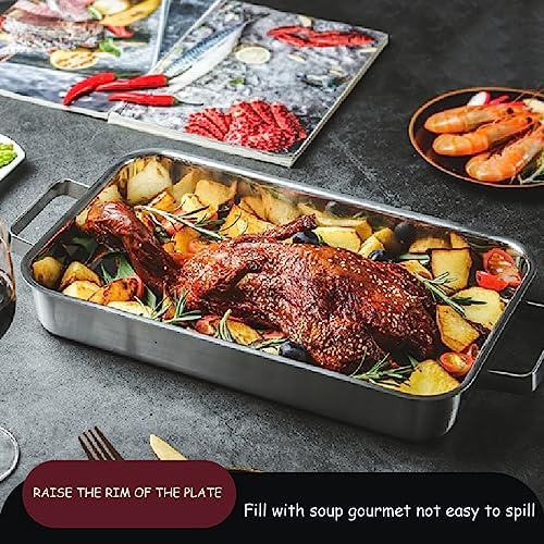 Introducing the Stainless Steel Roaster Pan, expertly crafted for both home and commercial kitchens. Made from durable, warp-resistant stainless steel, this roasting pan offers exceptional heat retention and even heat distribution, ensuring your meats and dishes cook thoroughly and achieve that perfect golden-brown finish. This versatile roaster is perfect for a variety of cooking needs—from roasting tender beef, chicken, and turkey to baking a delicious lasagna or preparing hearty casseroles for family gatherings and special occasions. The sleek silver design not only enhances your kitchen aesthetics but also makes serving directly from the oven to the table a stylish affair. With wide, comfortable handles, this roasting pan is designed for easy maneuverability, allowing you to effortlessly transfer your culinary creations in and out of the oven. Available in three practical sizes—34x21cm, 38x25cm, and 42x28cm—this pan caters to all your cooking requirements, whether you're hosting an intimate dinner or a large feast. Elevate your cooking experience with the Stainless Steel Roaster Pan, where quality meets functionality. Ideal for everyday use or special events, this pan is an essential kitchen tool for anyone who enjoys cooking and entertaining. Make your culinary adventures effortless and enjoyable with this reliable roaster that promises to deliver delicious results every time.